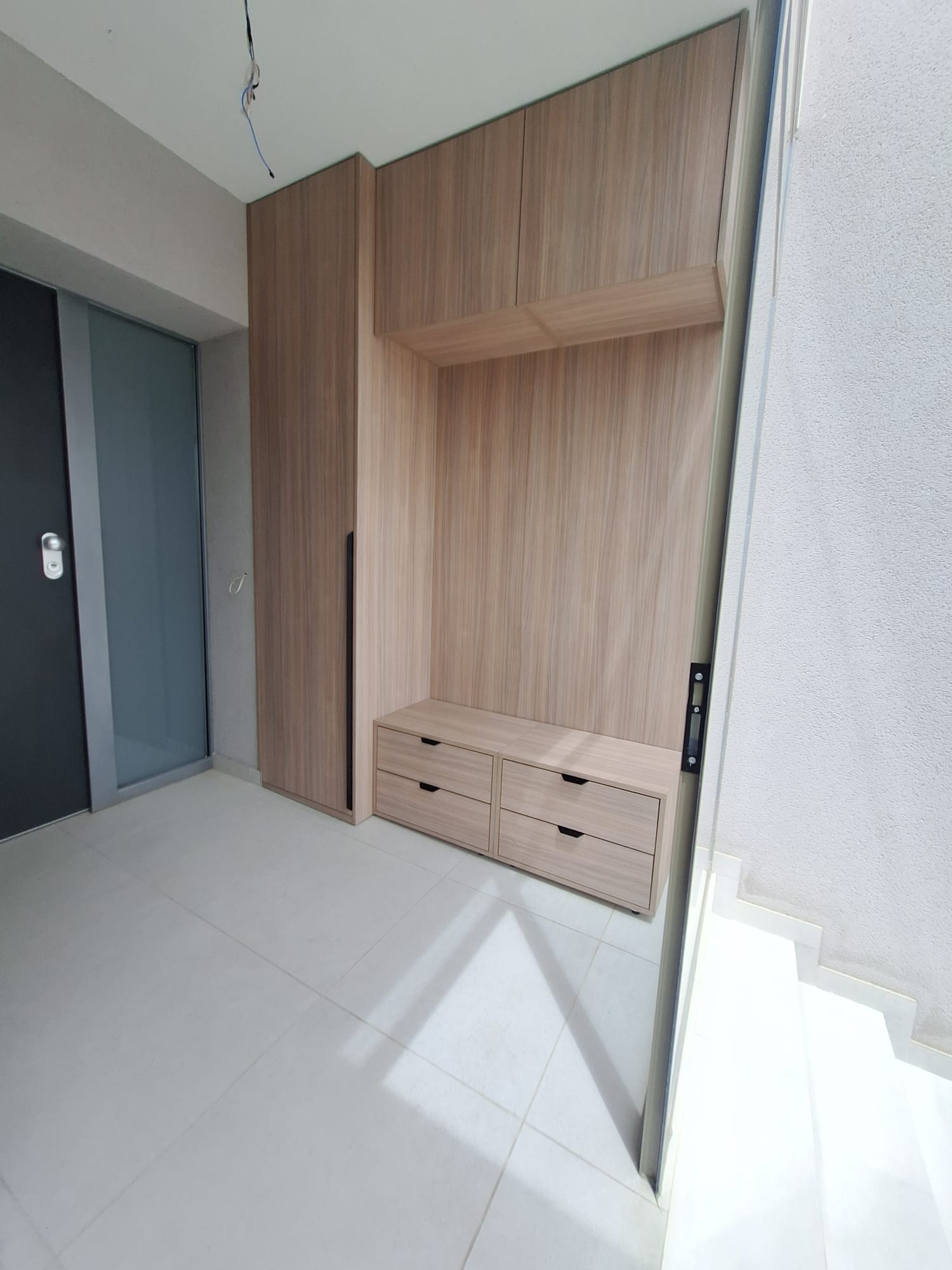 Otro de los puntos destacados del proyecto fue la creación de un recibidor con almacenaje a medida. En este espacio, nuestra intención fue doble: crear una primera impresión acogedora al entrar en la vivienda y, al mismo tiempo, ofrecer una solución práctica para guardar calzado, bolsos y otros objetos cotidianos.