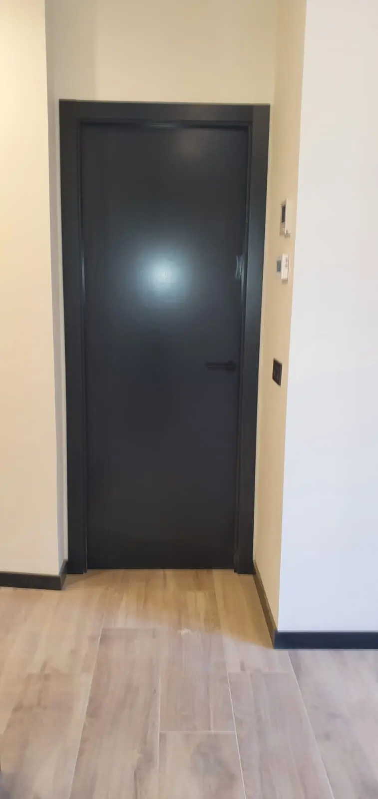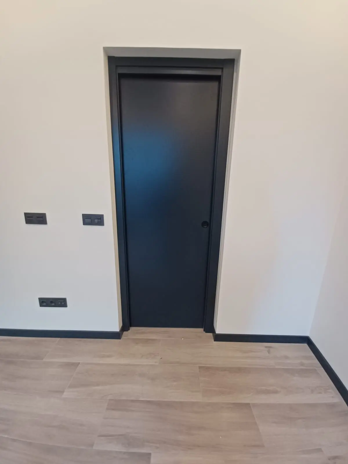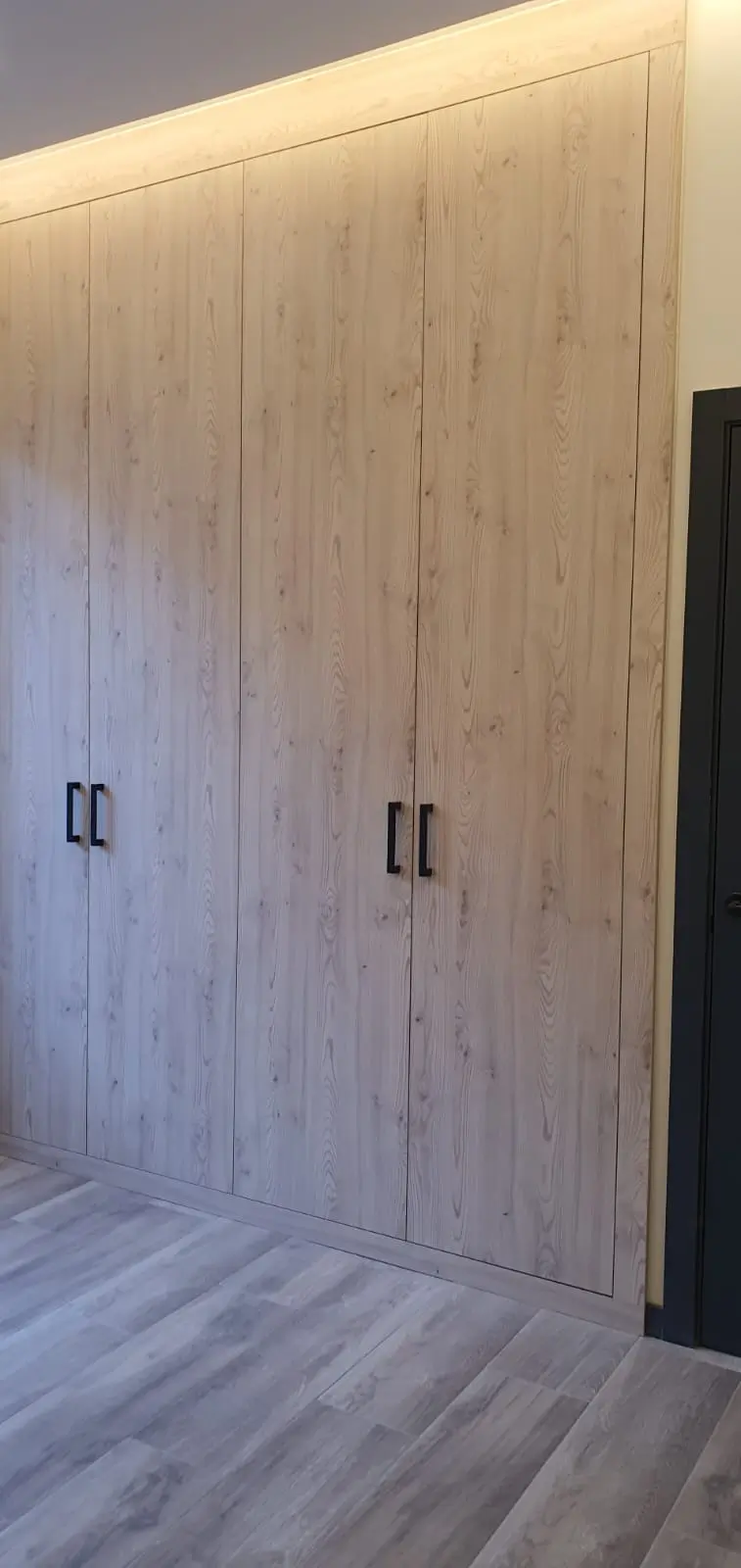 • Armarios con puertas abatibles en Melamina Castaño Kentucky Arena y pomos en negro.