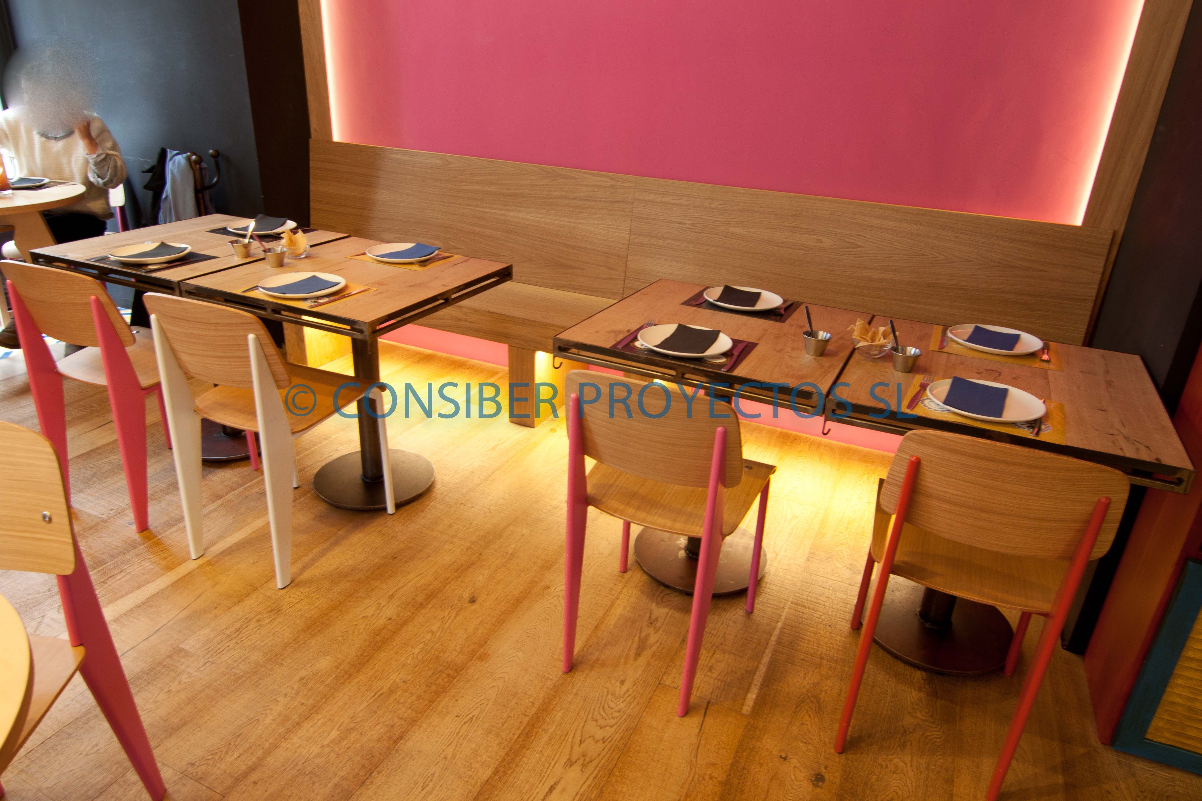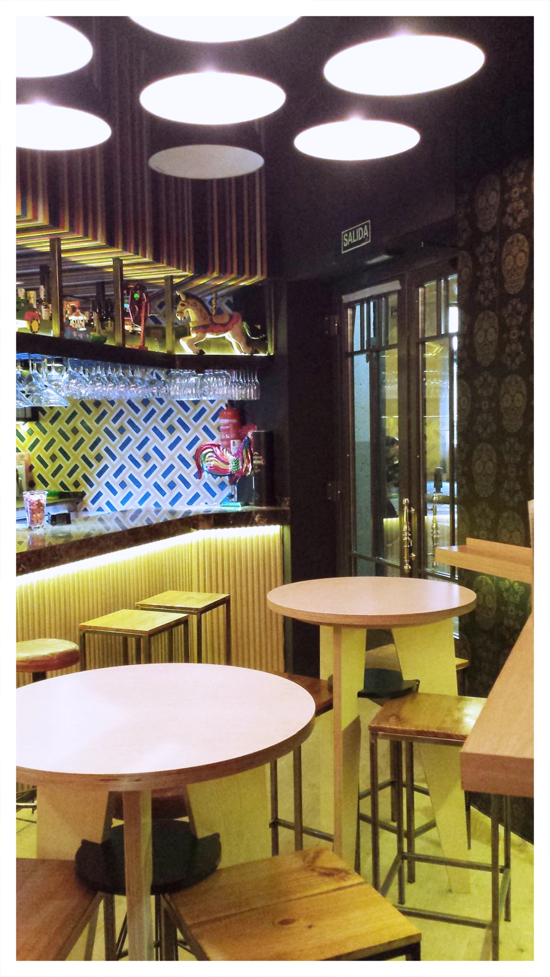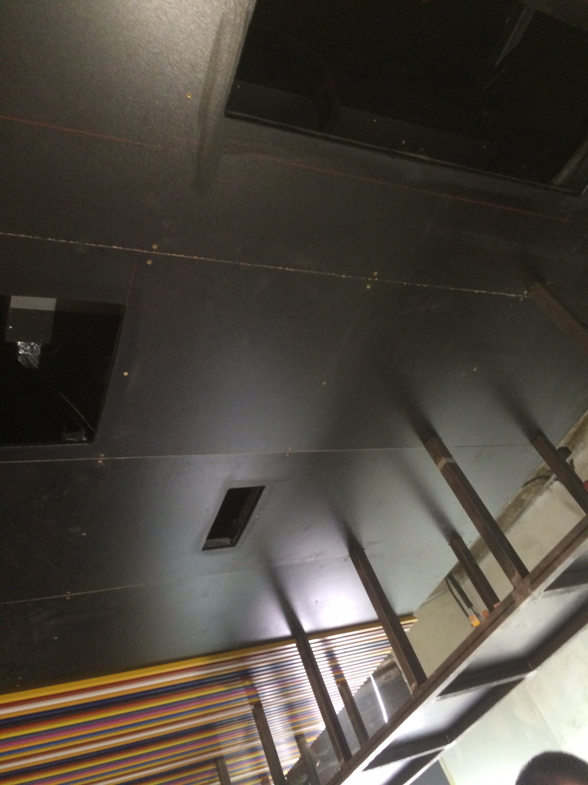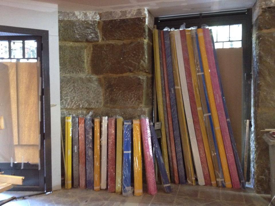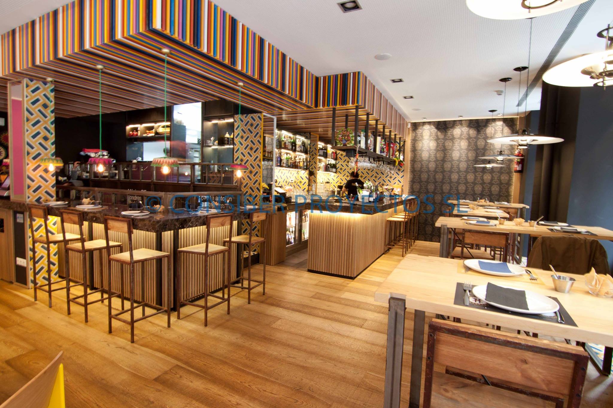 Revestimiento de techo de barra con listones de DM lacados en diferentes colores
