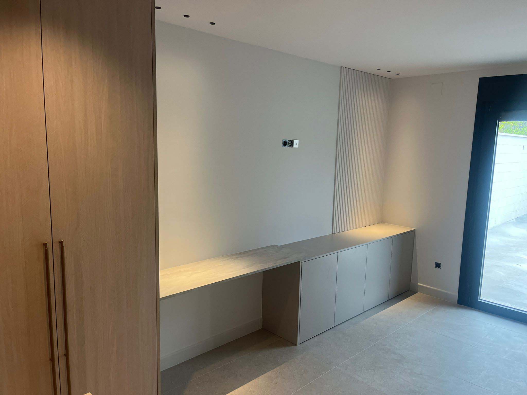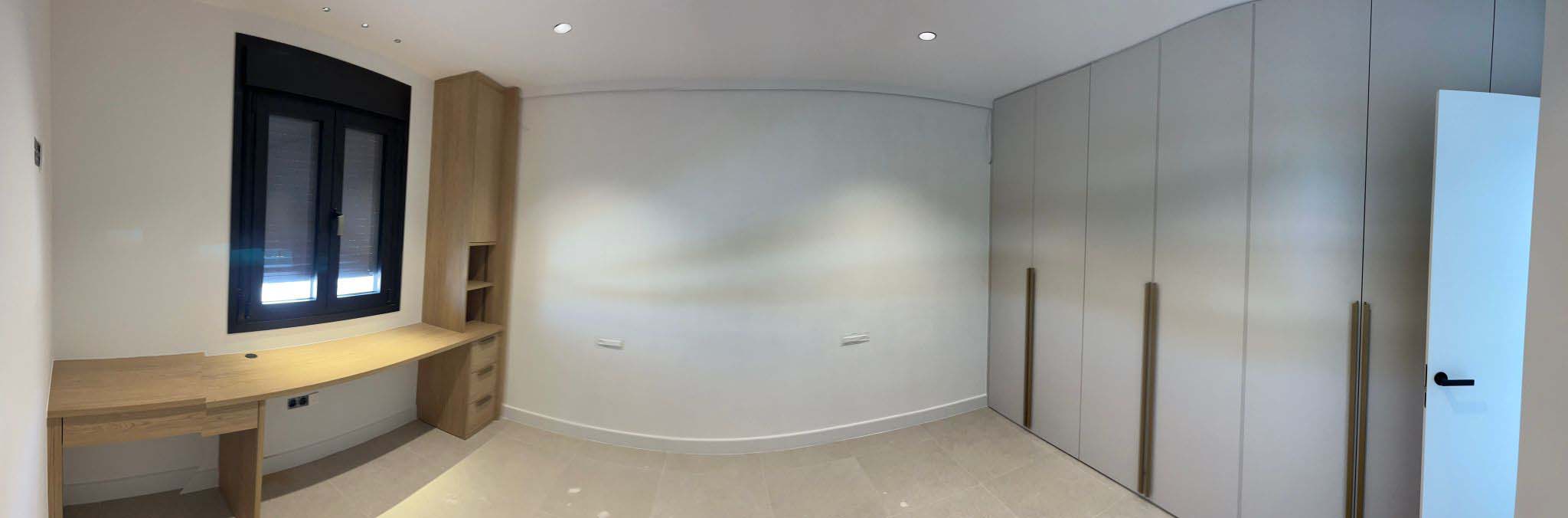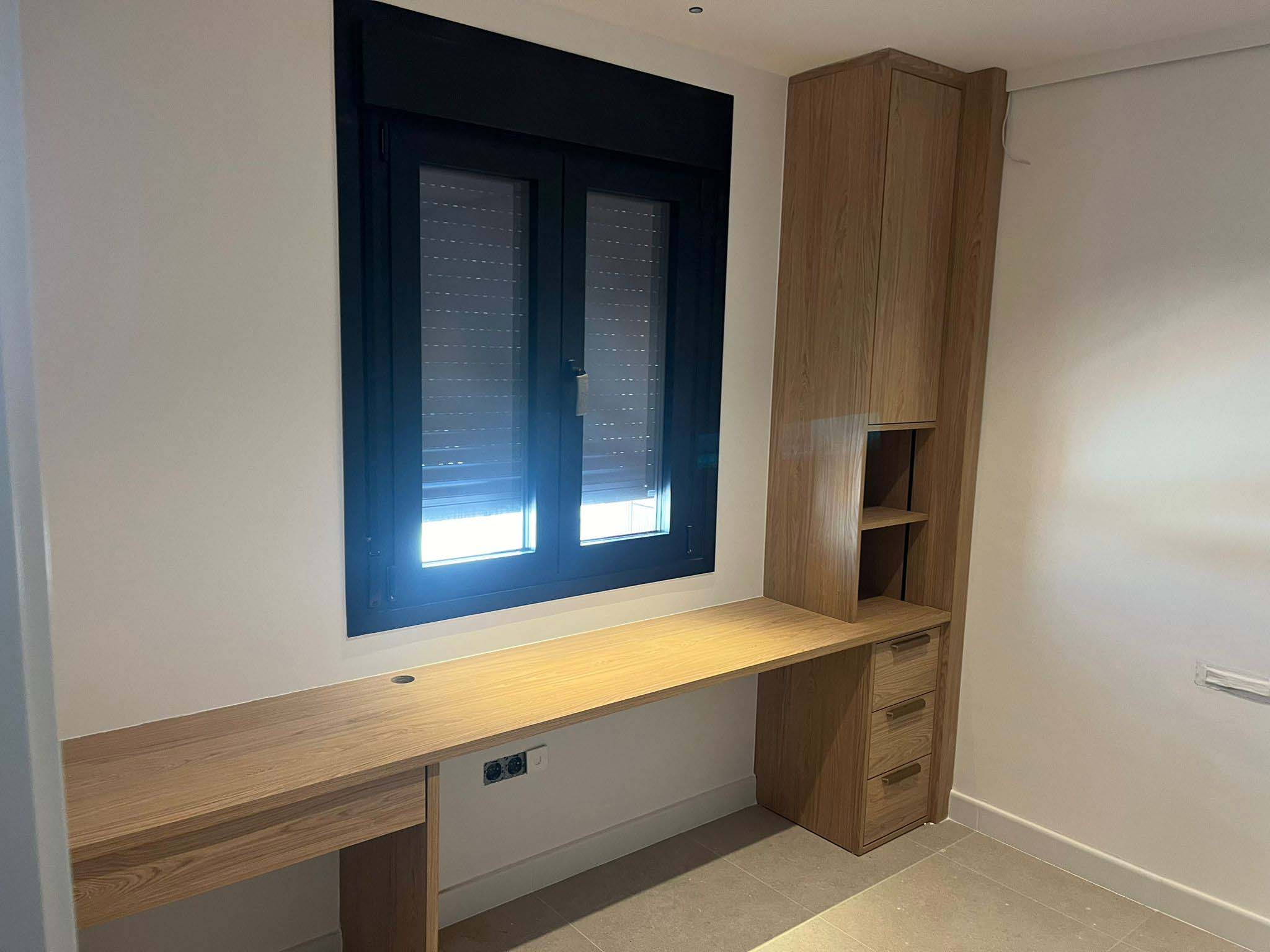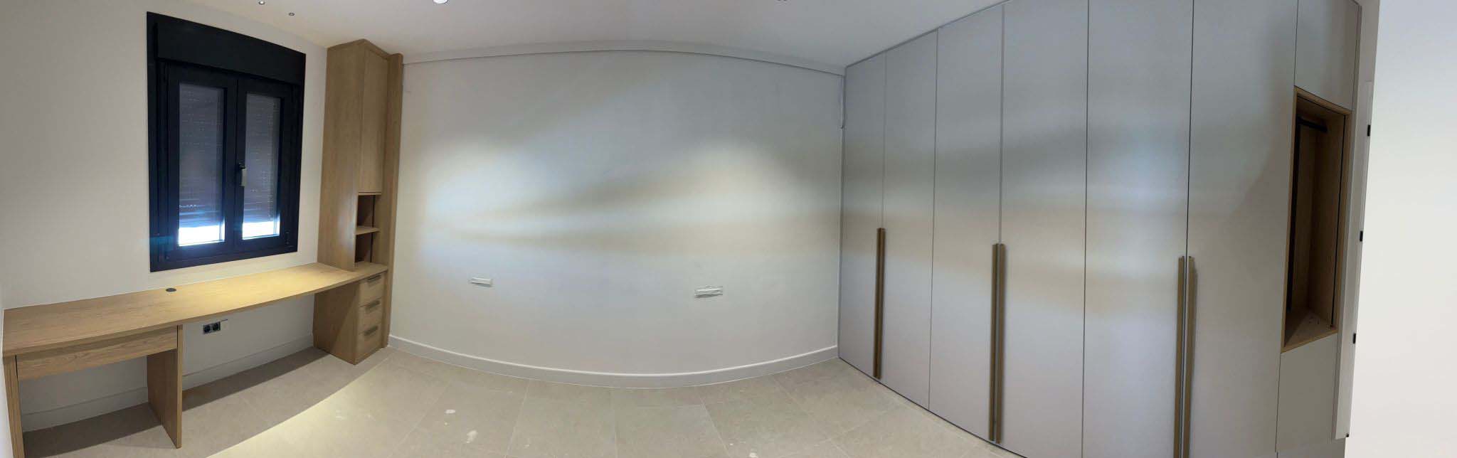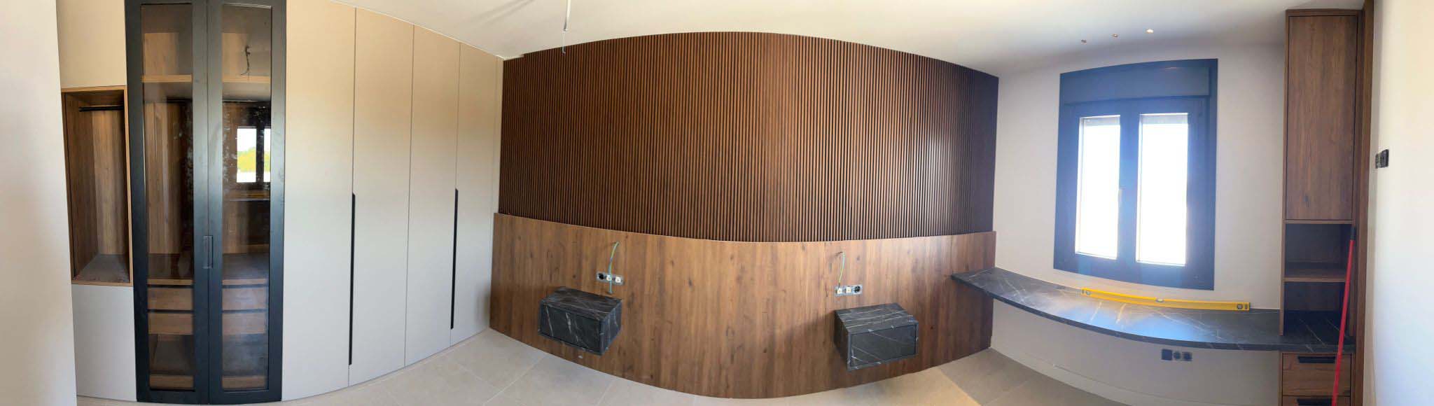 Se han fabricado puertas, armarios, cabeceros, armarios, mesillas, vestidores, panelado, muebles de baño, etc. Un trabajo completo que ha aportado un carácter único a la vivienda.