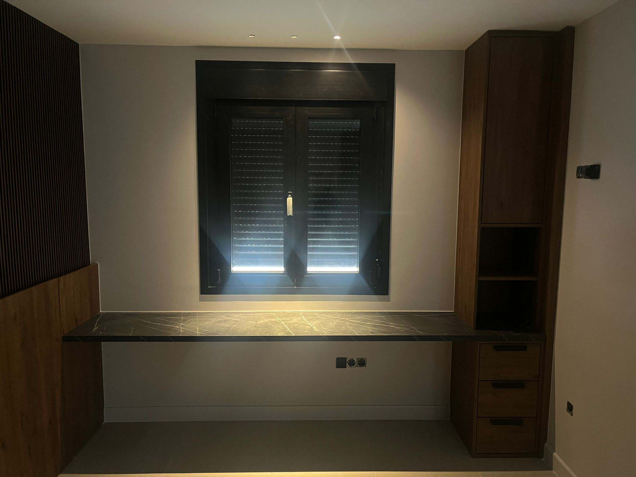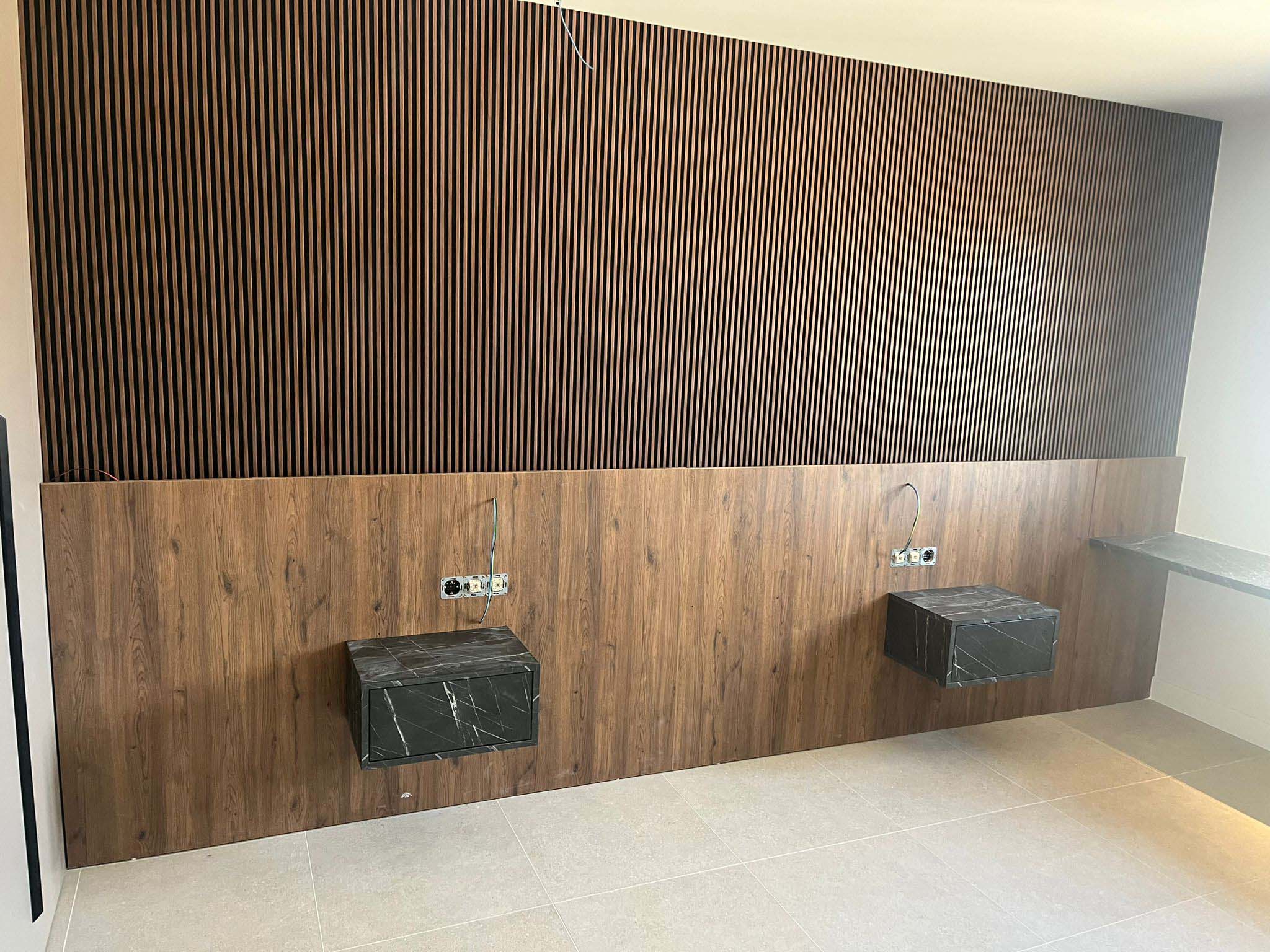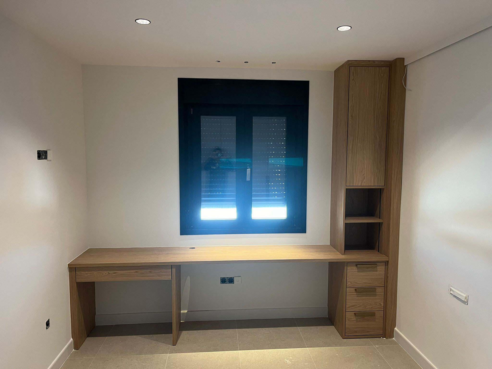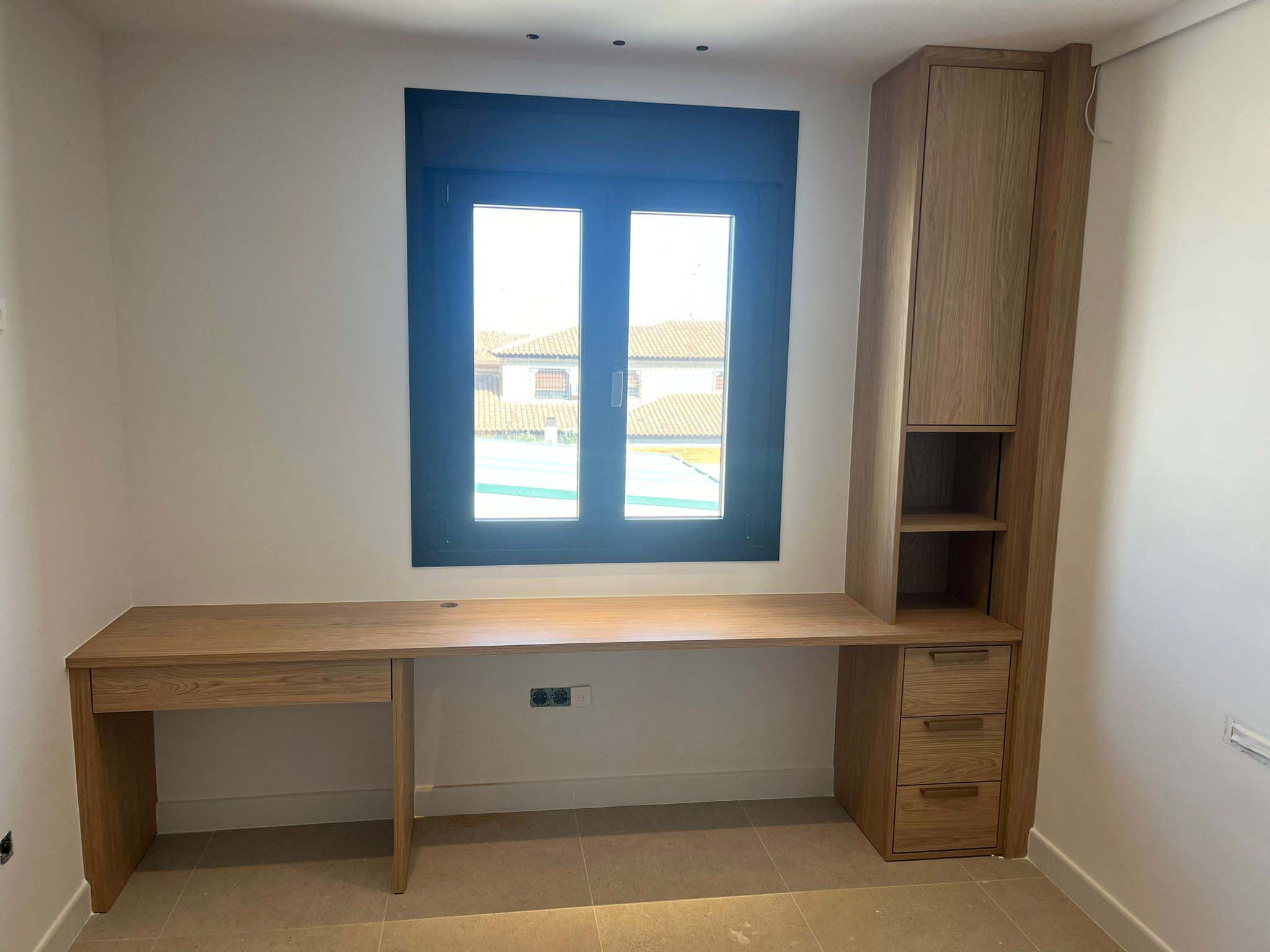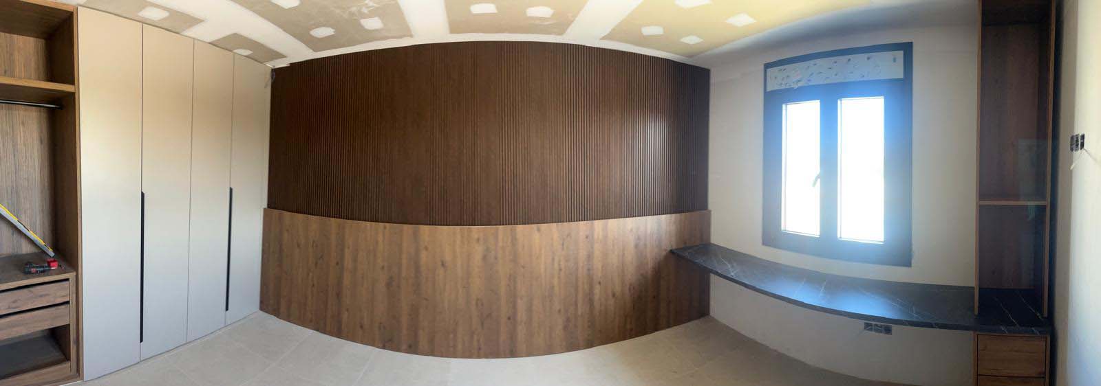 Se han fabricado puertas, armarios, cabeceros, armarios, mesillas, vestidores, panelado, muebles de baño, etc. Un trabajo completo que ha aportado un carácter único a la vivienda.