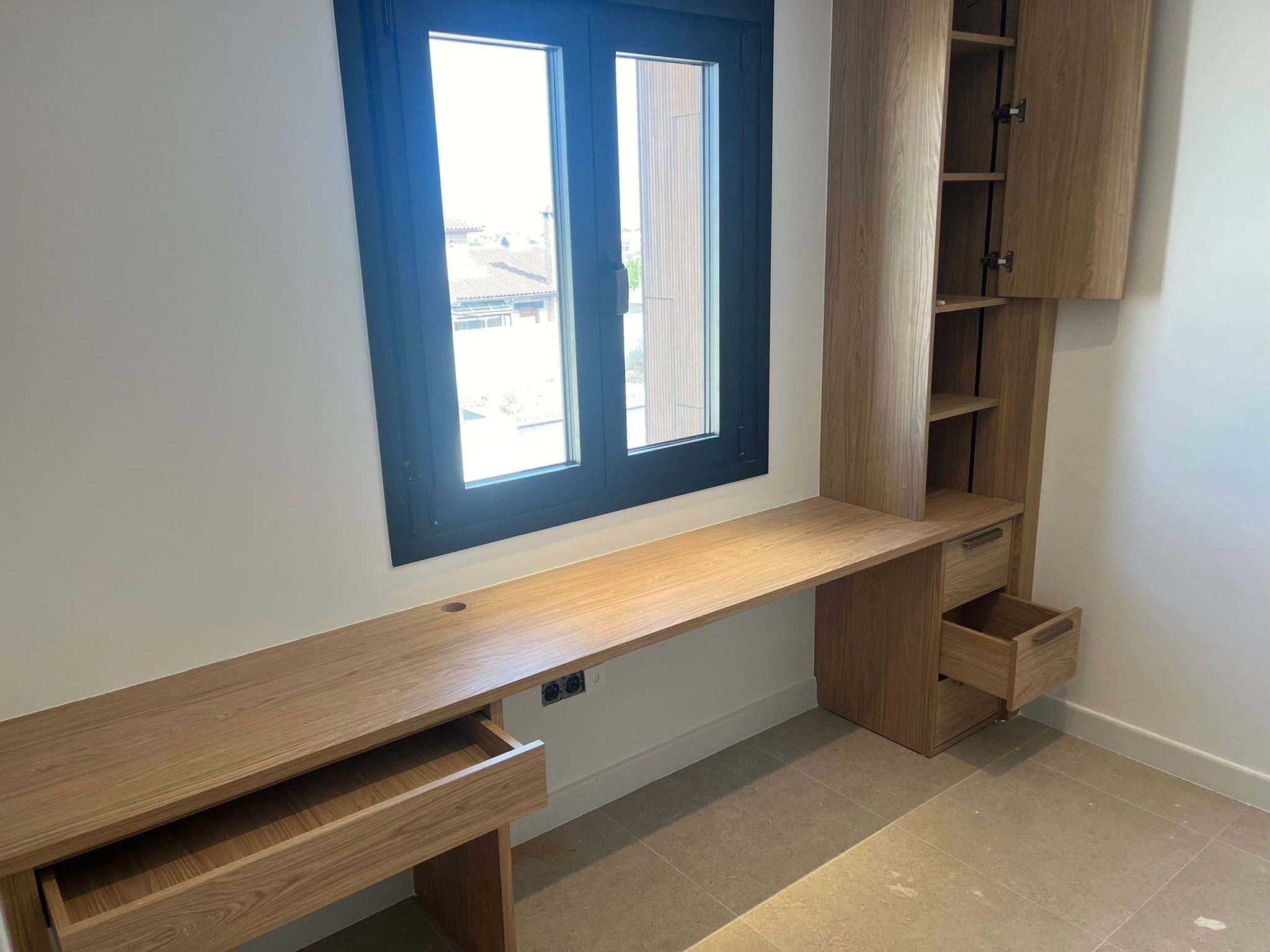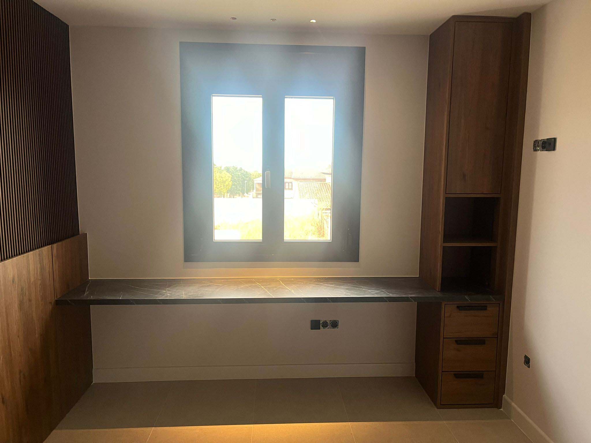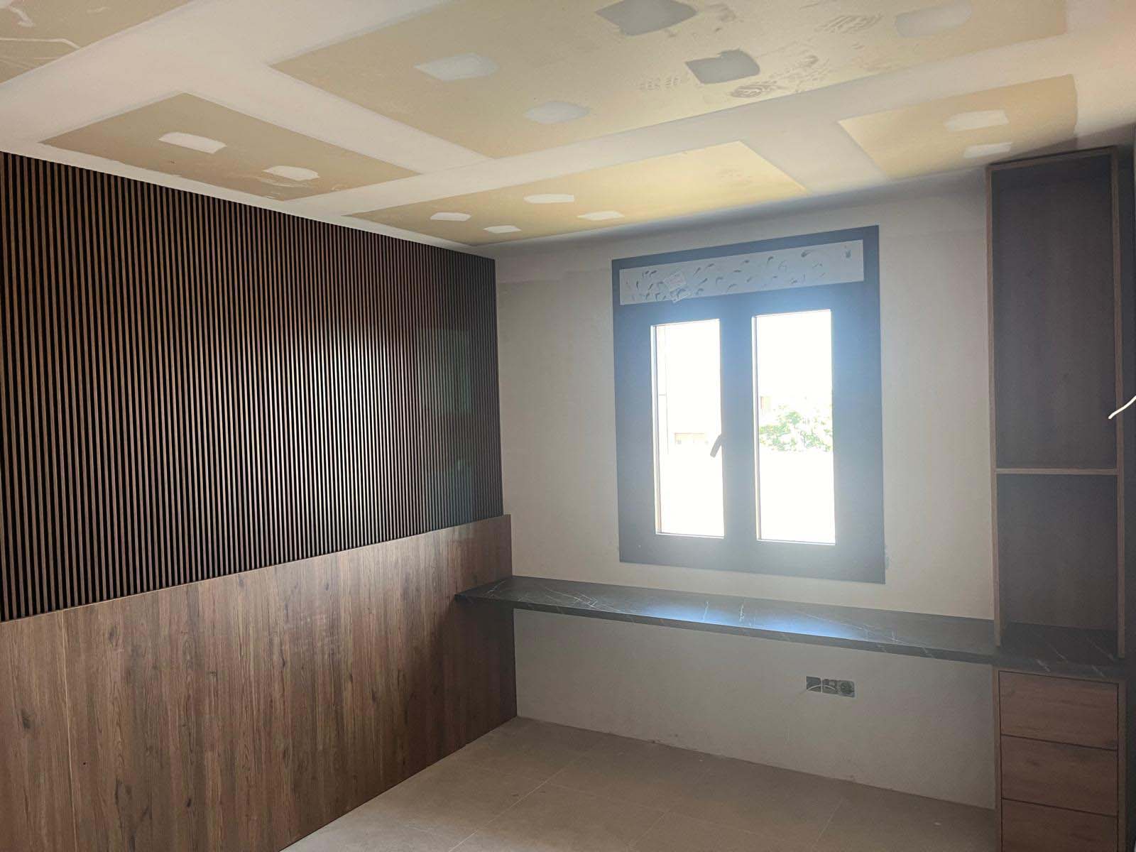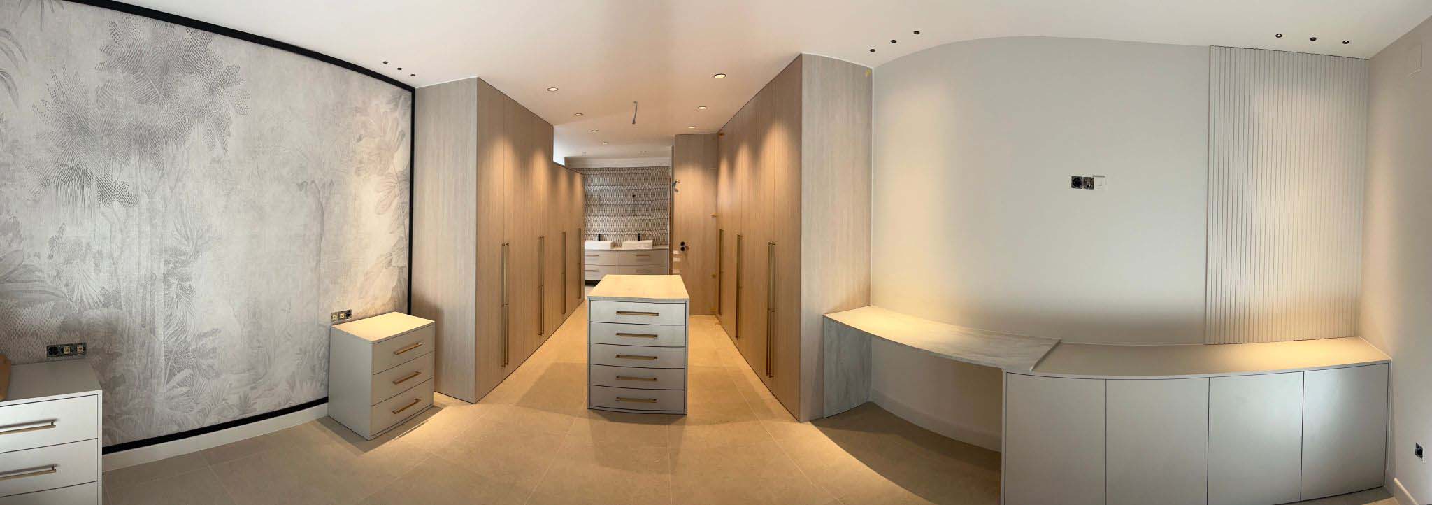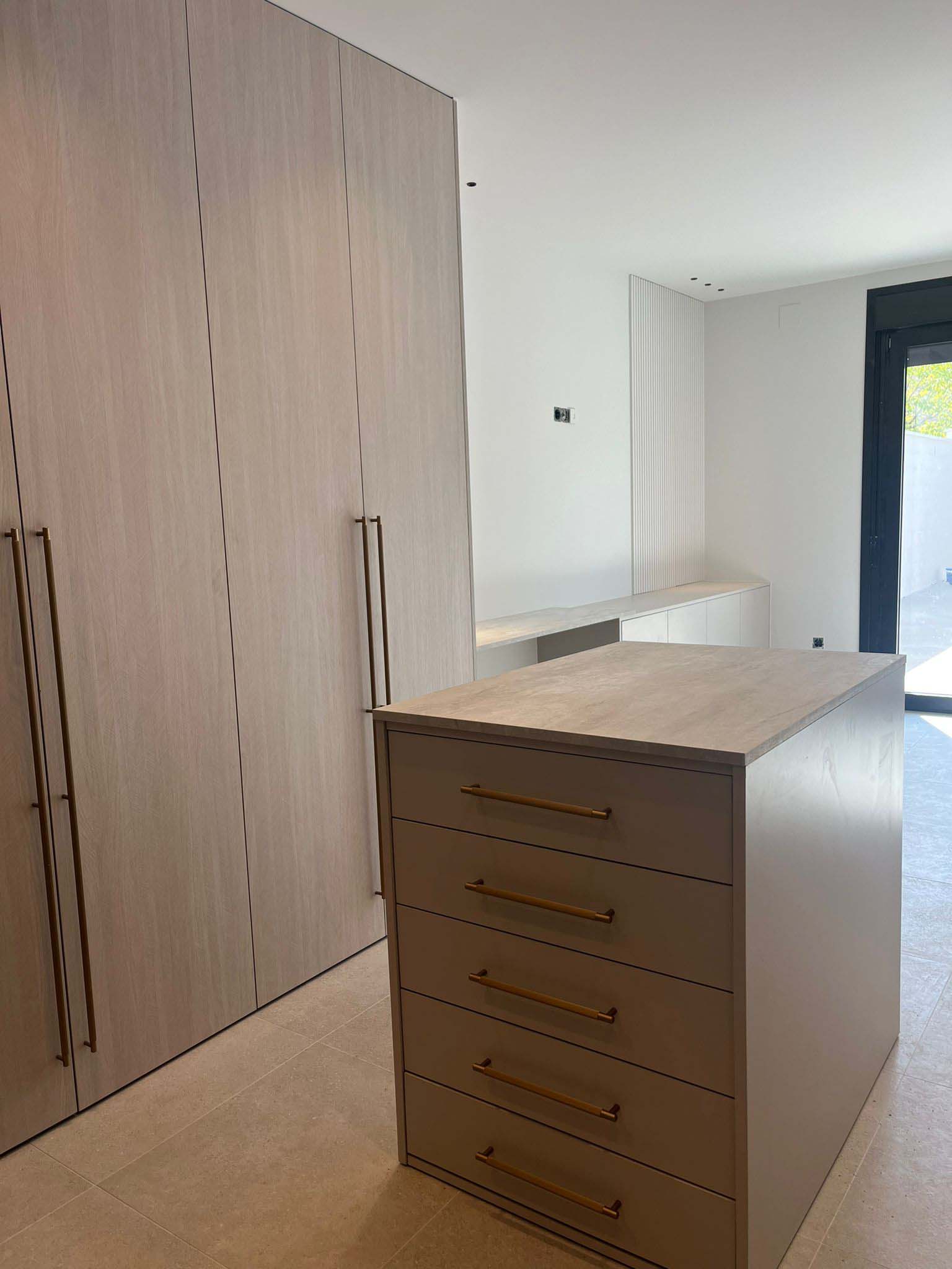 Se han fabricado puertas, armarios, cabeceros, armarios, mesillas, vestidores, panelado, muebles de baño, etc. Un trabajo completo que ha aportado un carácter único a la vivienda.