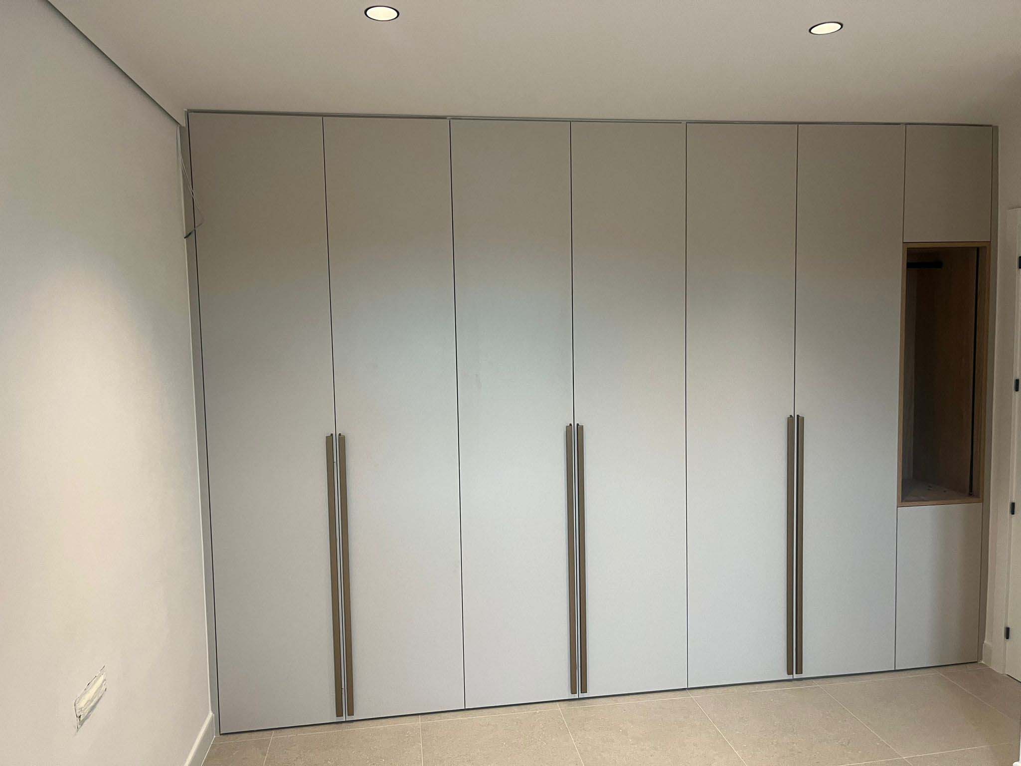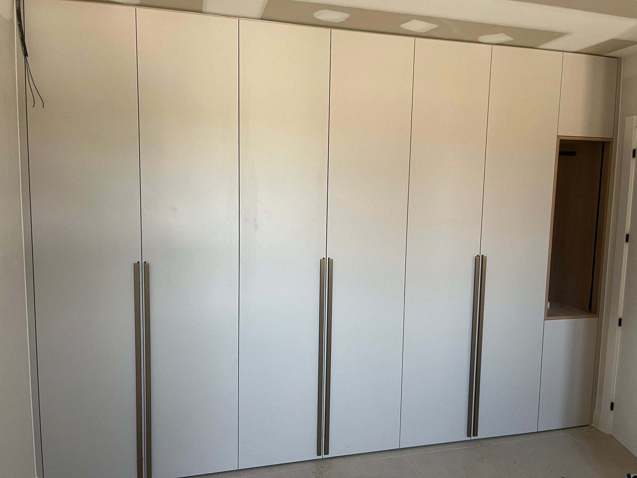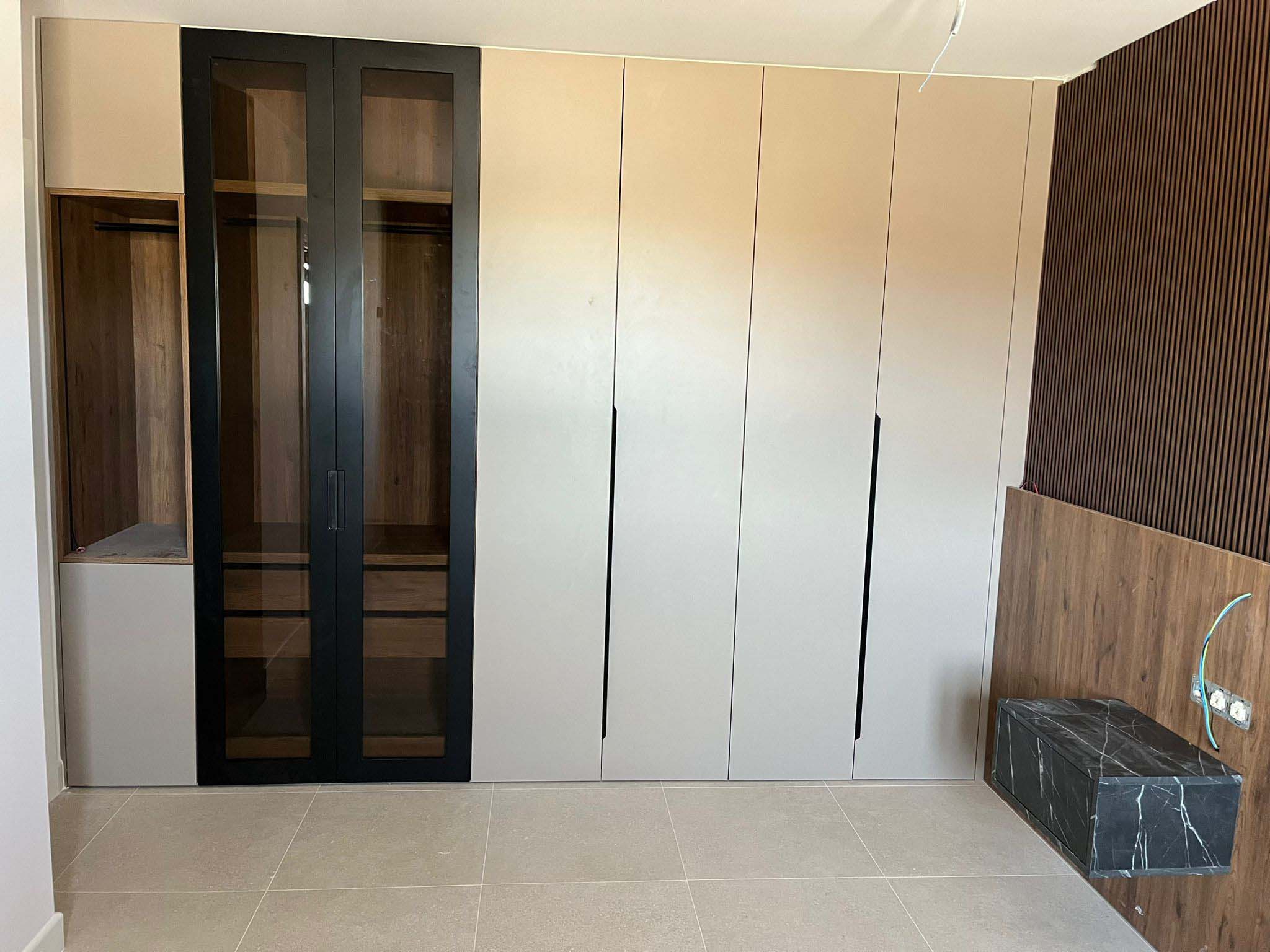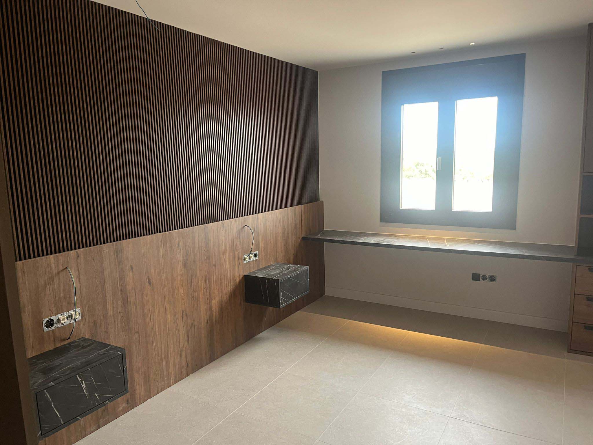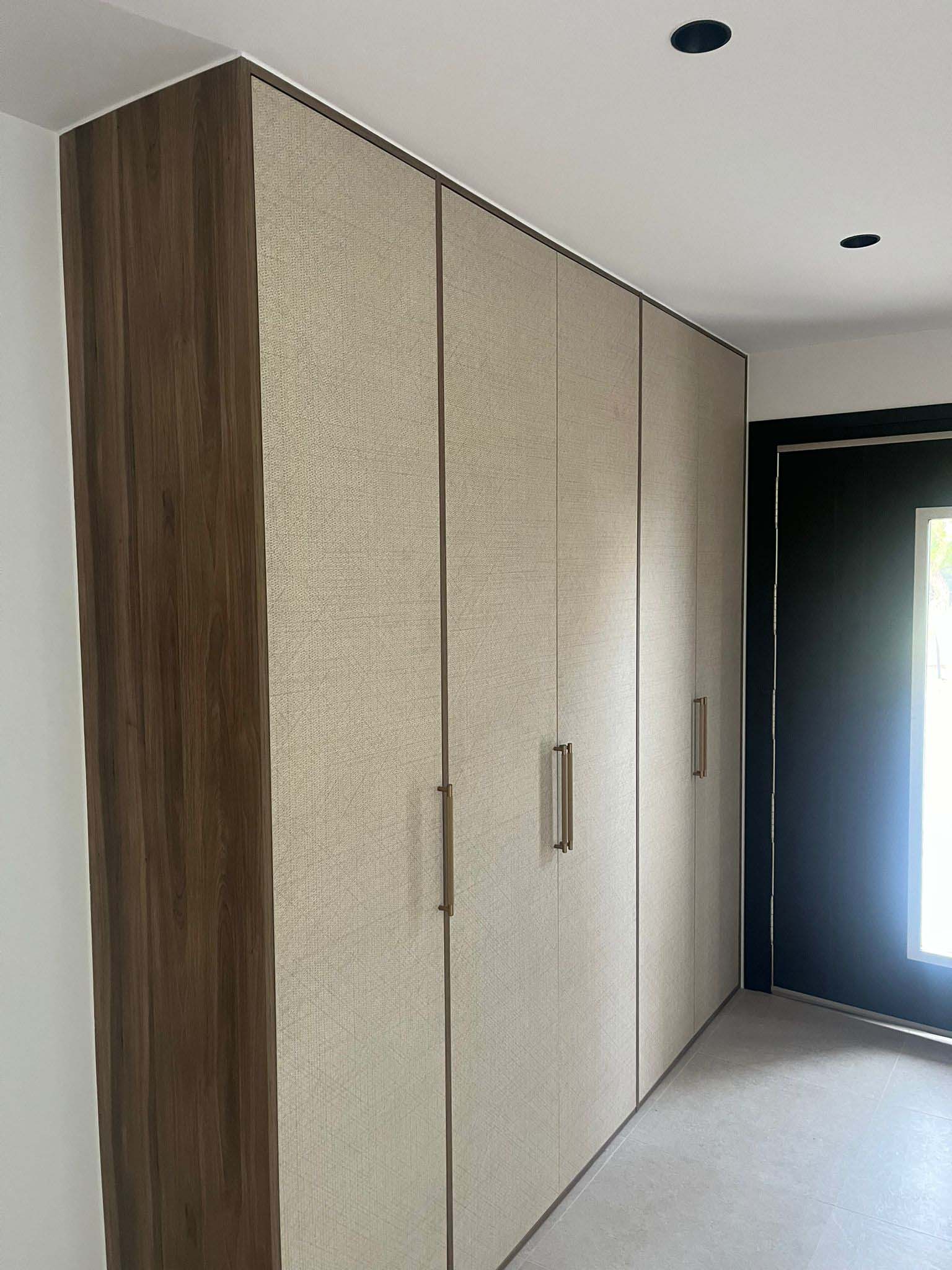 Se han fabricado puertas, armarios, cabeceros, armarios, mesillas, vestidores, panelado, muebles de baño, etc. Un trabajo completo que ha aportado un carácter único a la vivienda.