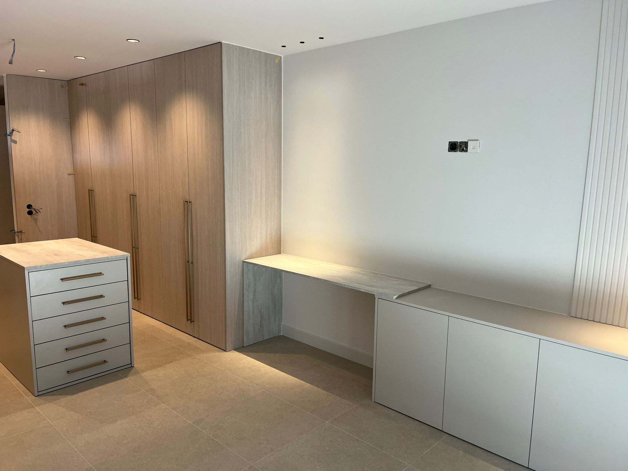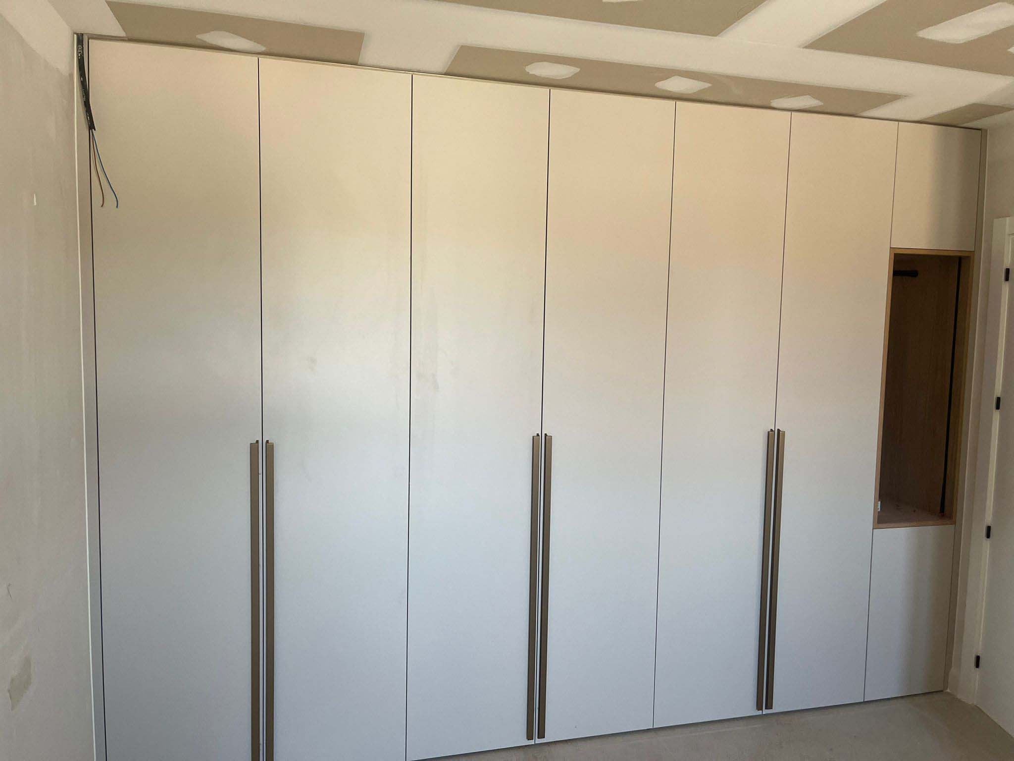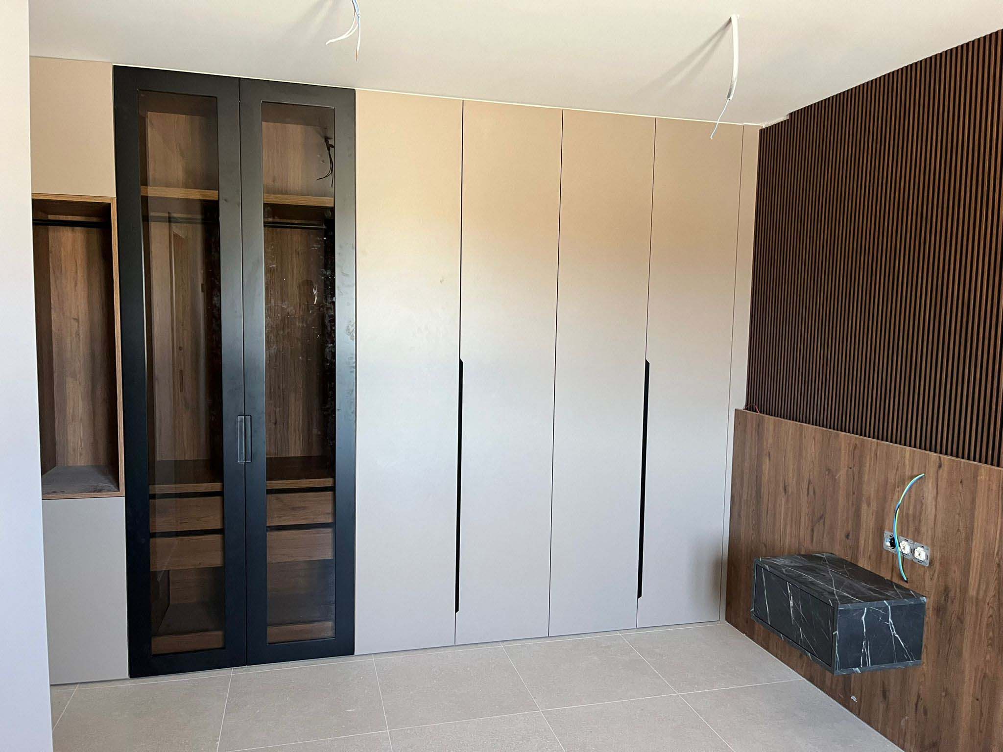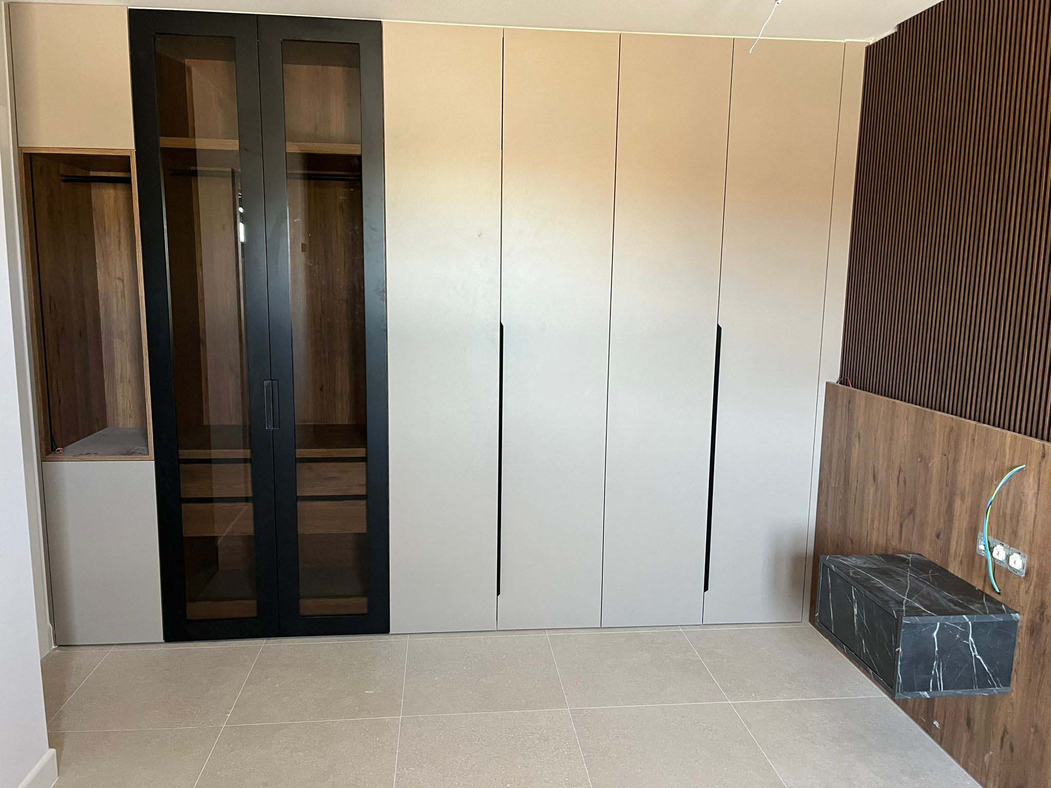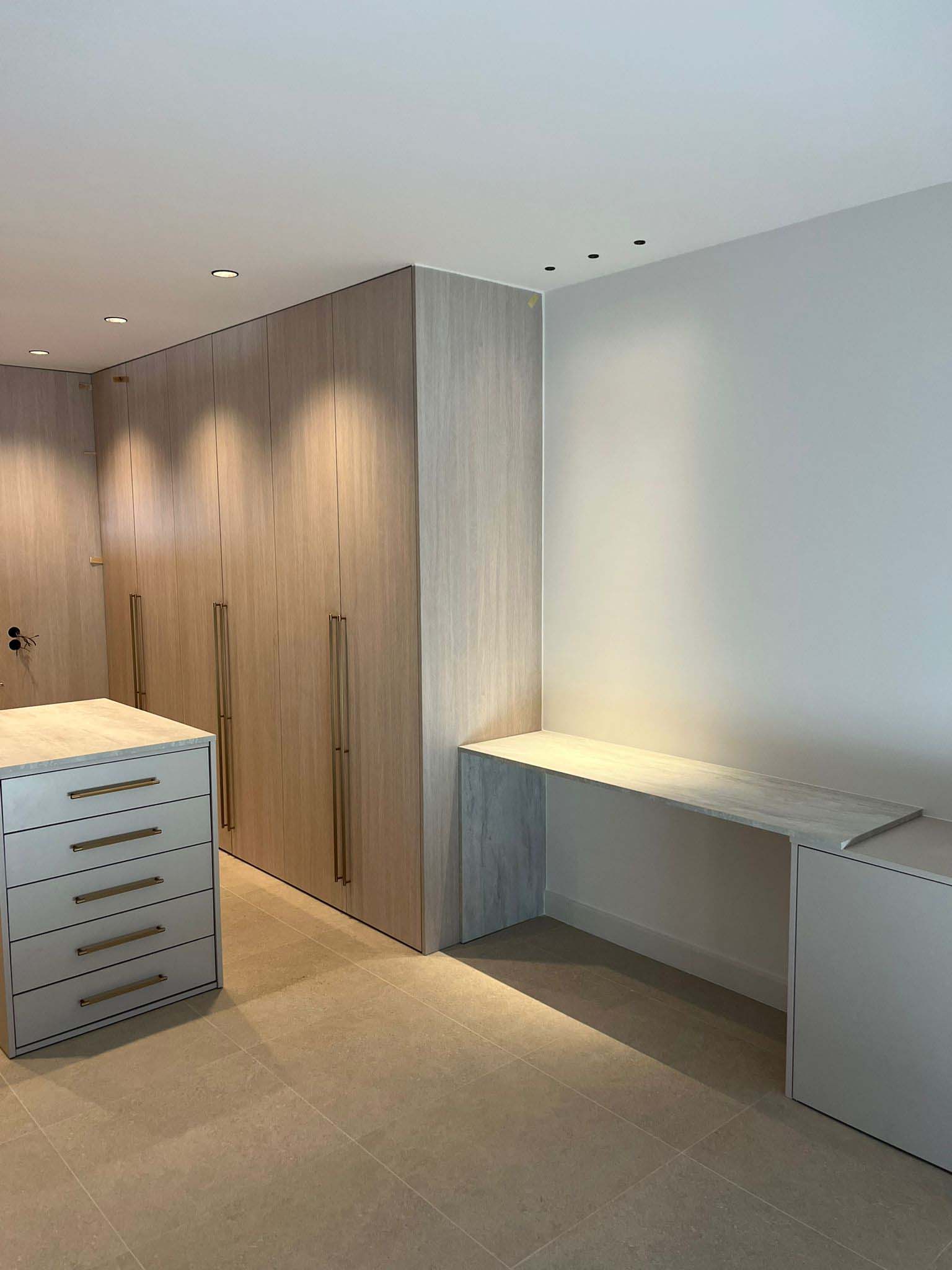 Se han fabricado puertas, armarios, cabeceros, armarios, mesillas, vestidores, panelado, muebles de baño, etc. Un trabajo completo que ha aportado un carácter único a la vivienda.