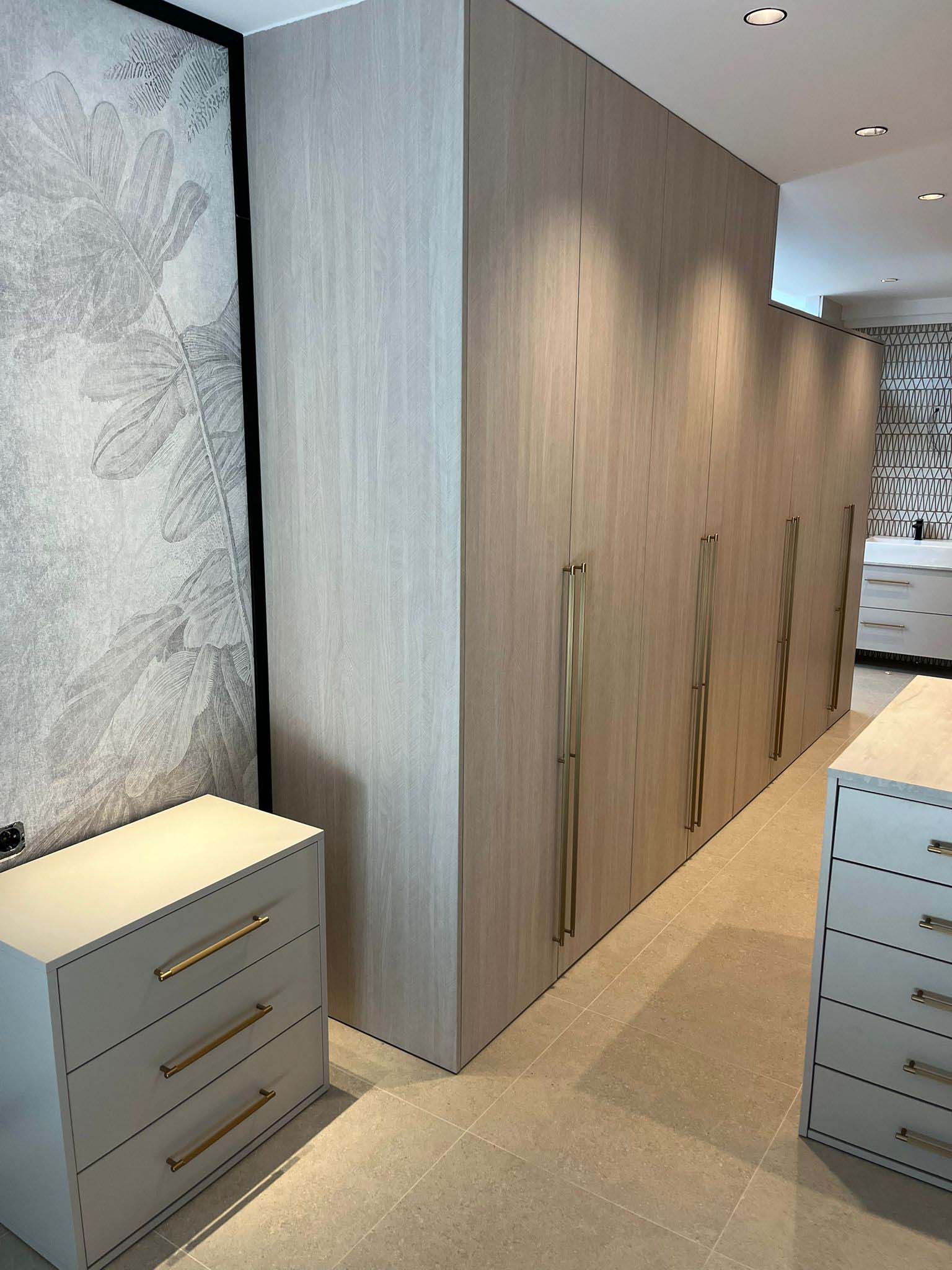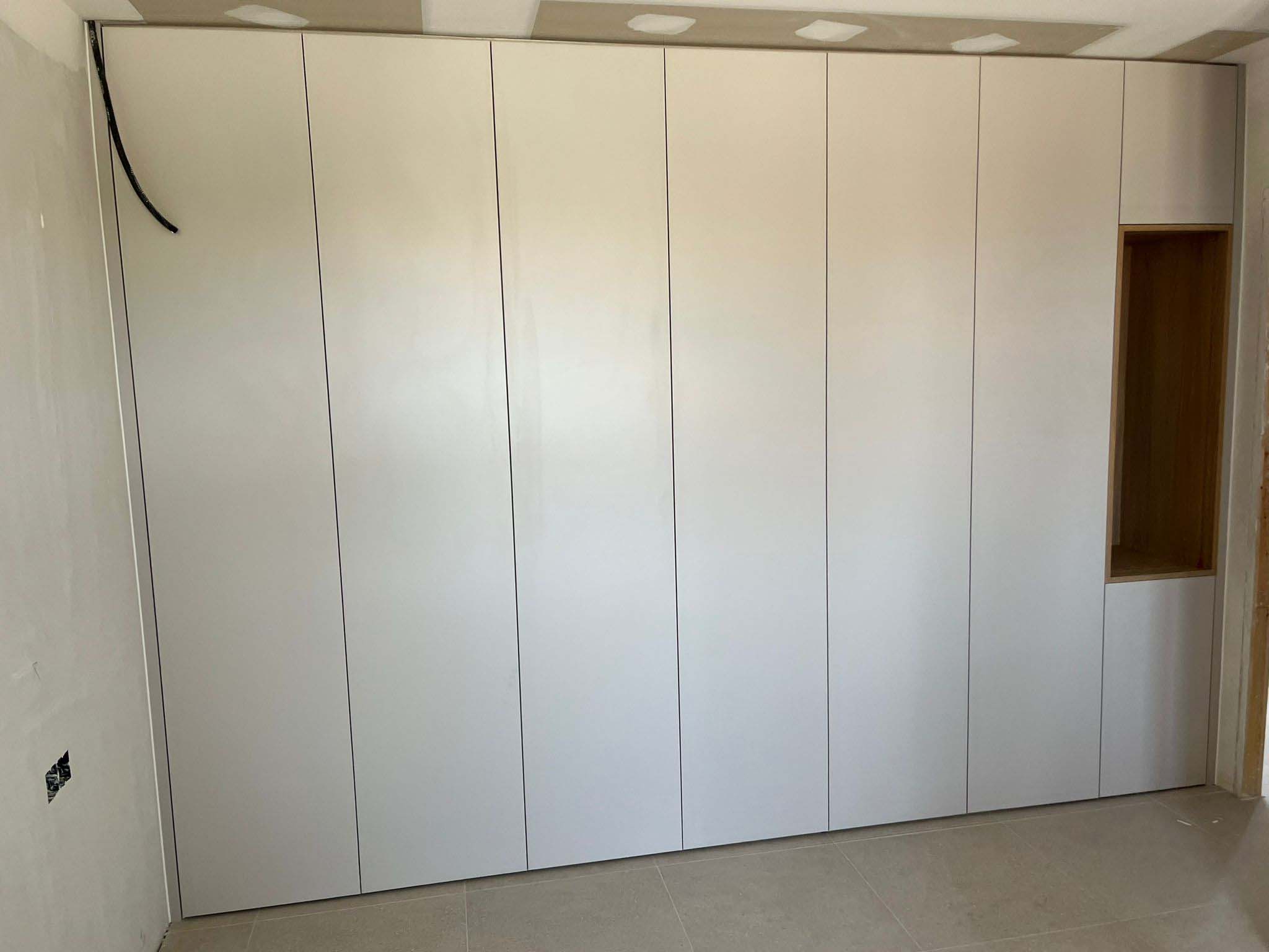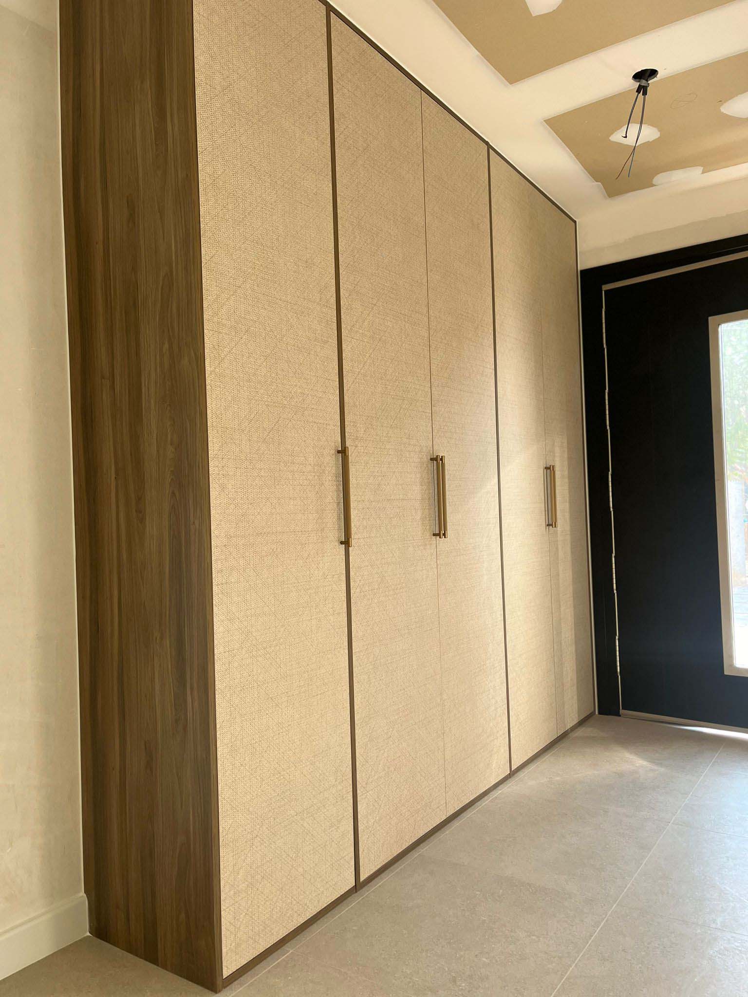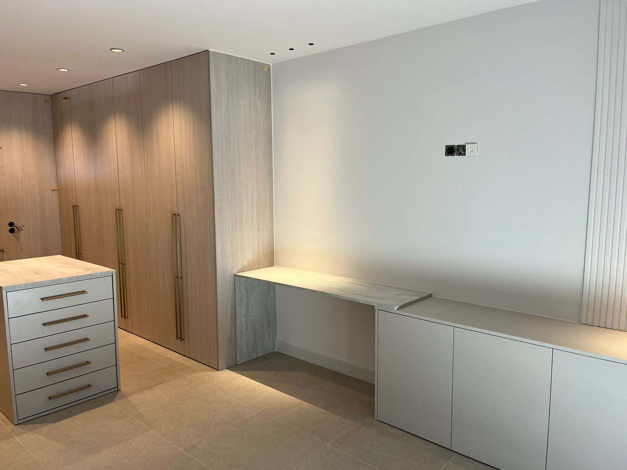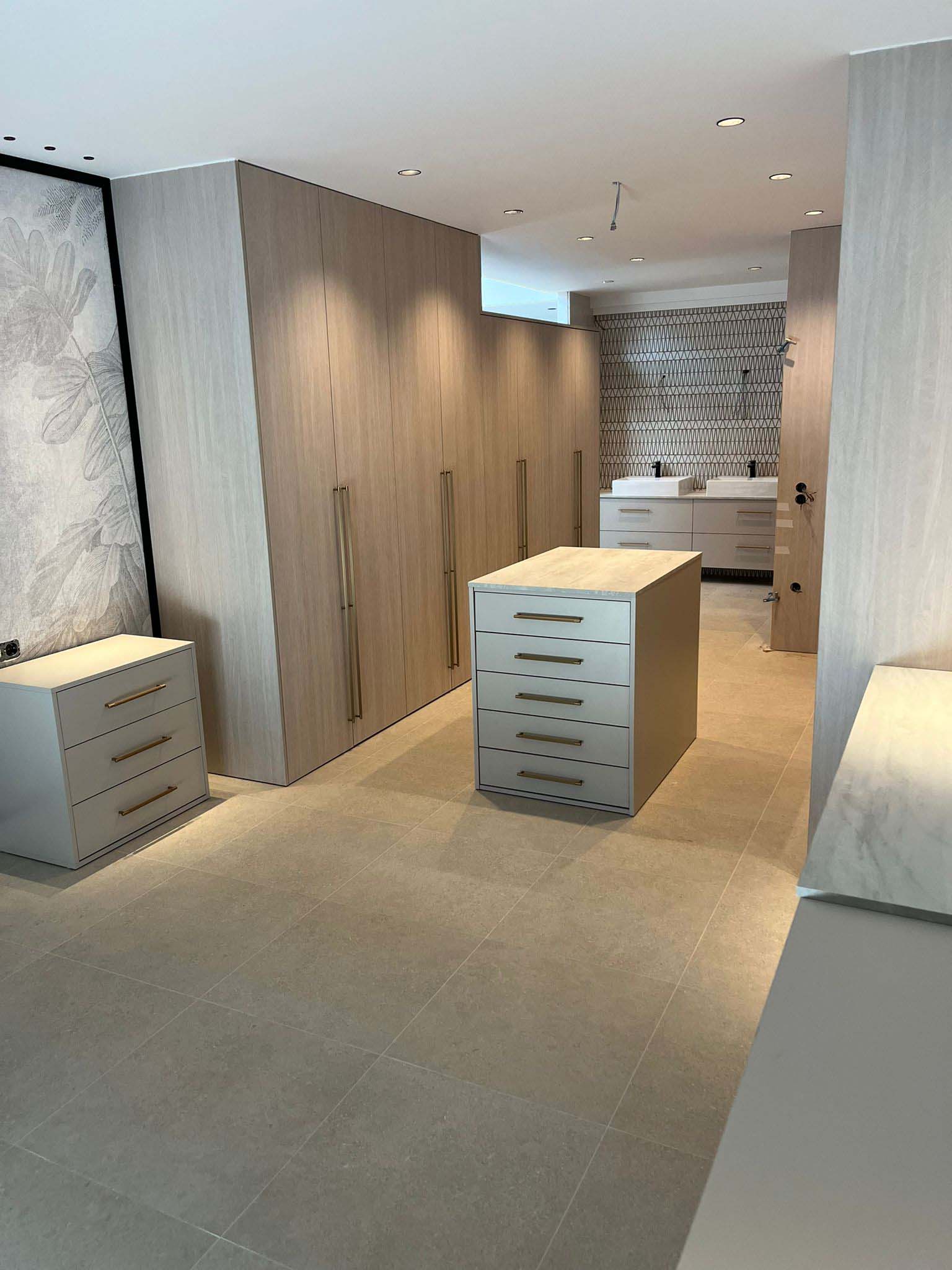 Se han fabricado puertas, armarios, cabeceros, armarios, mesillas, vestidores, panelado, muebles de baño, etc. Un trabajo completo que ha aportado un carácter único a la vivienda.