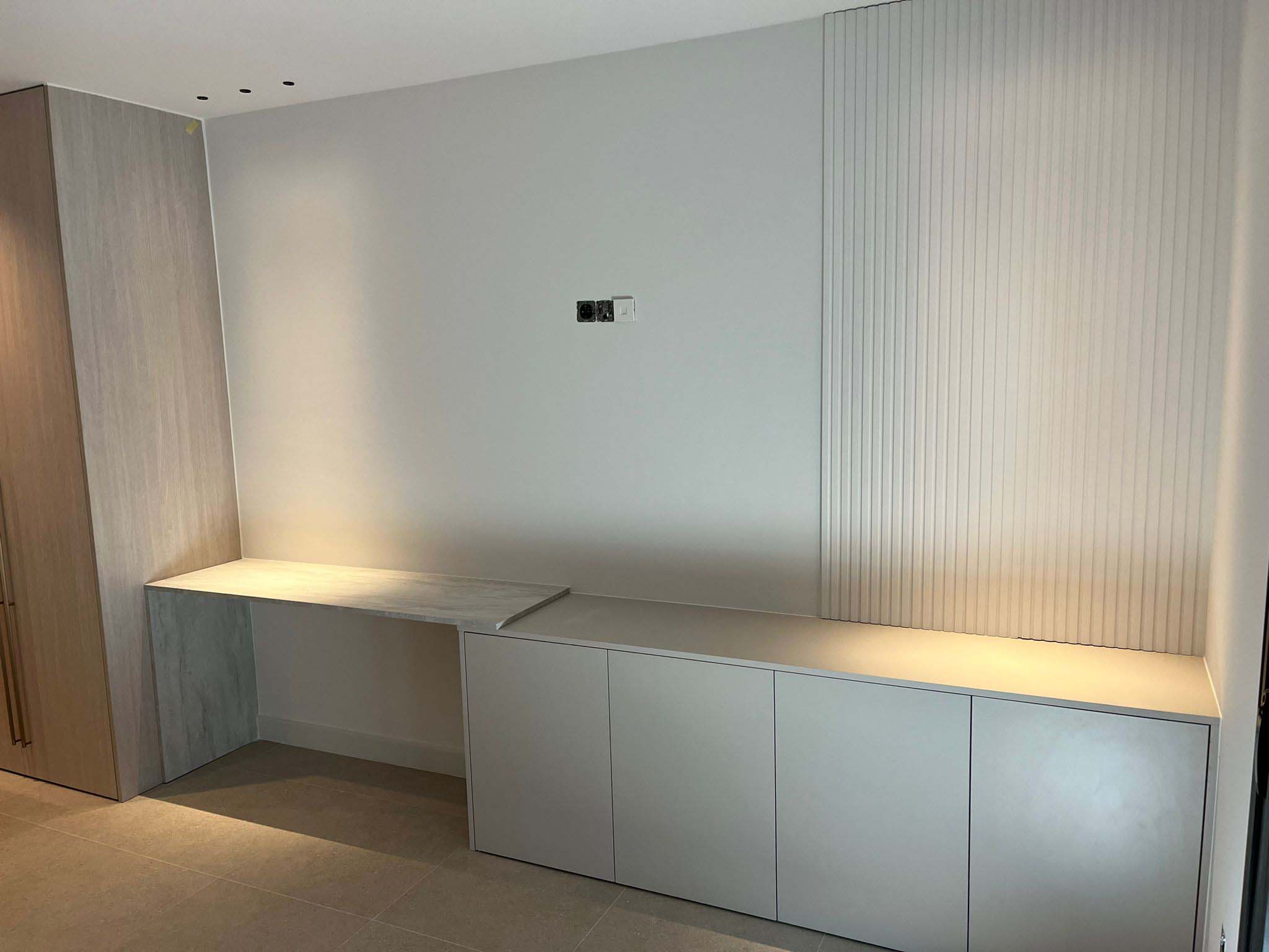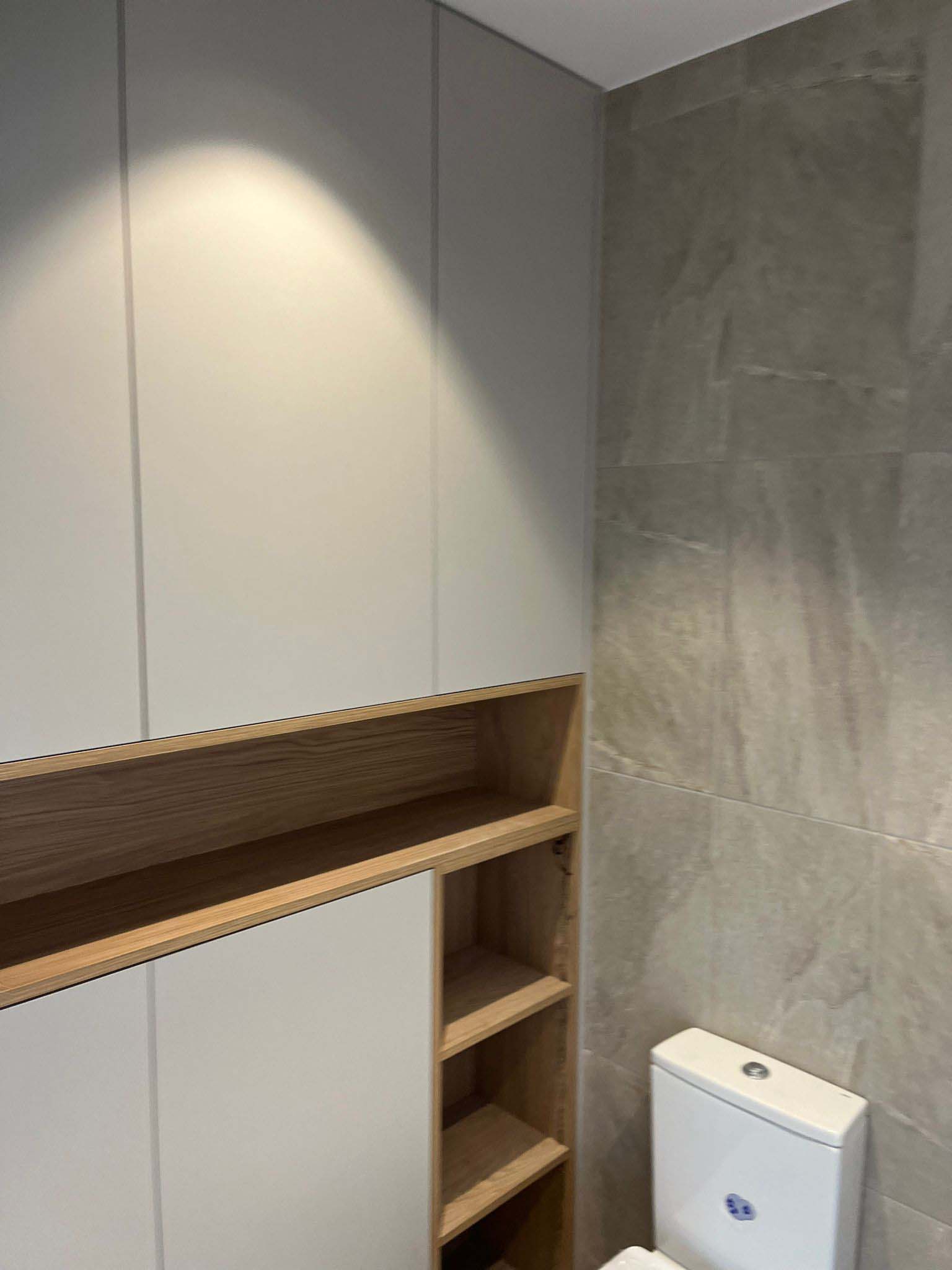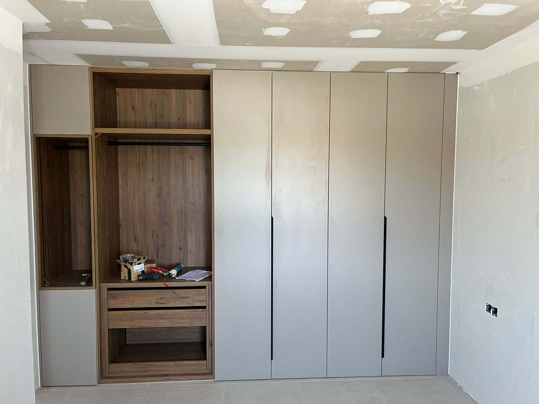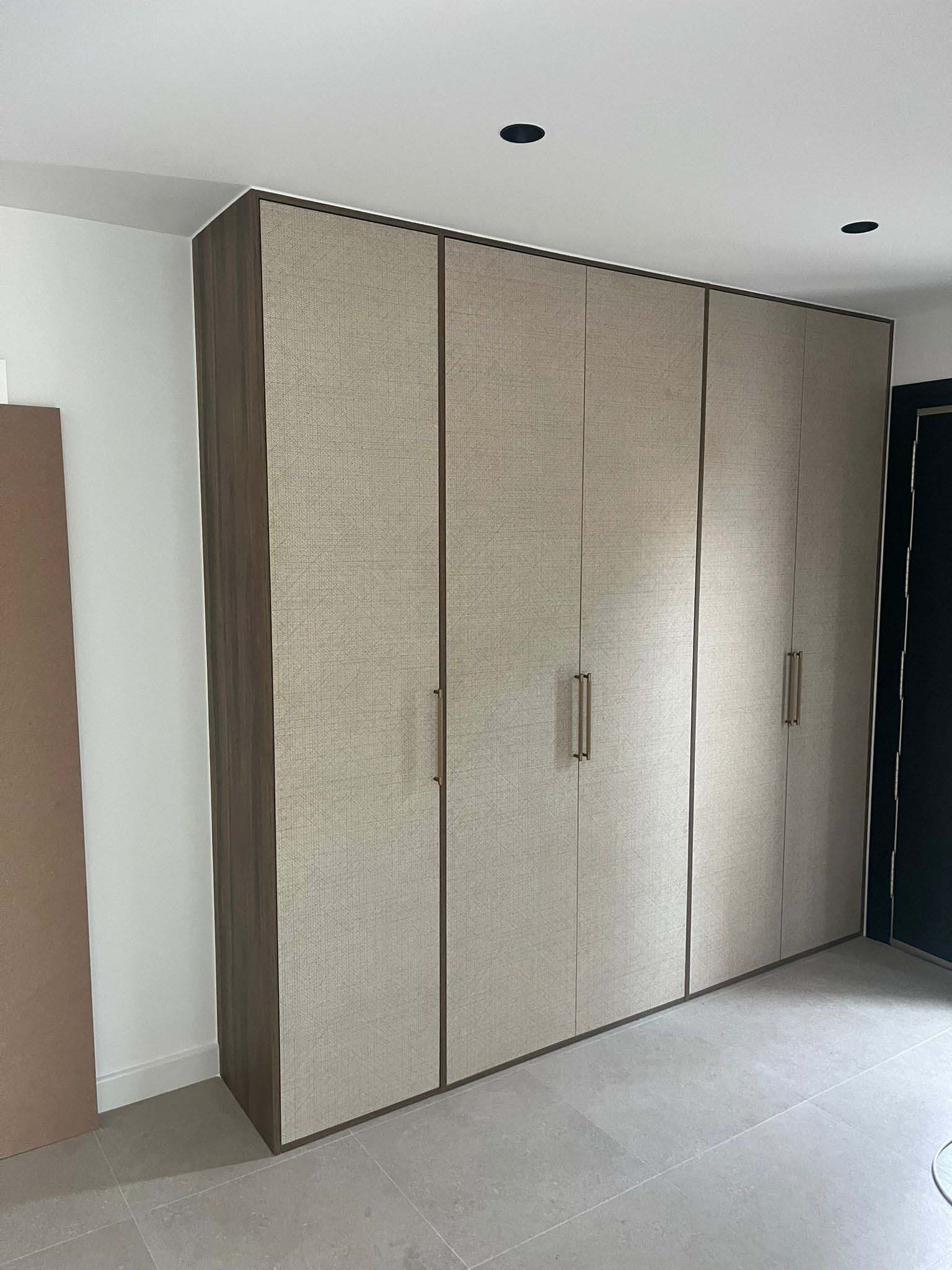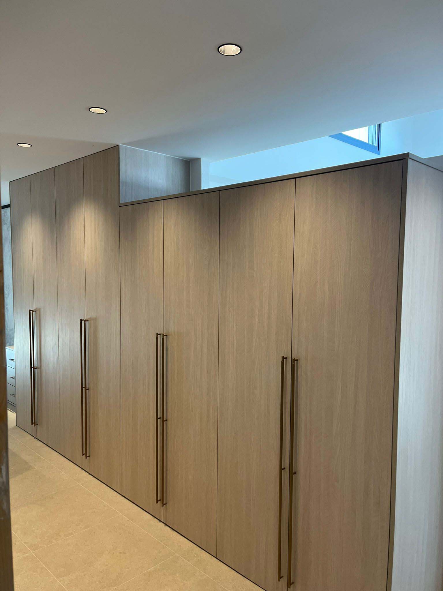 Se han fabricado puertas, armarios, cabeceros, armarios, mesillas, vestidores, panelado, muebles de baño, etc. Un trabajo completo que ha aportado un carácter único a la vivienda.