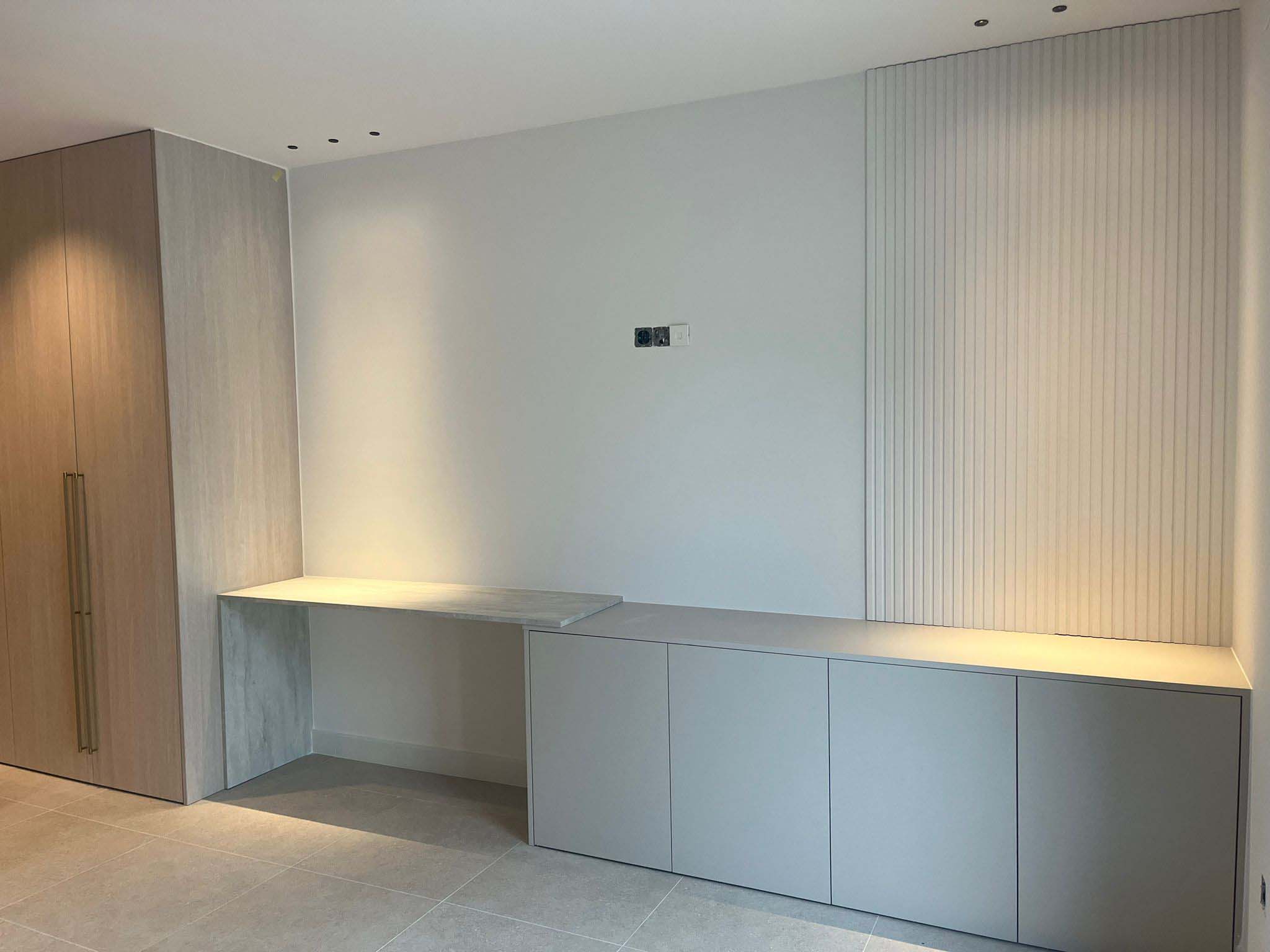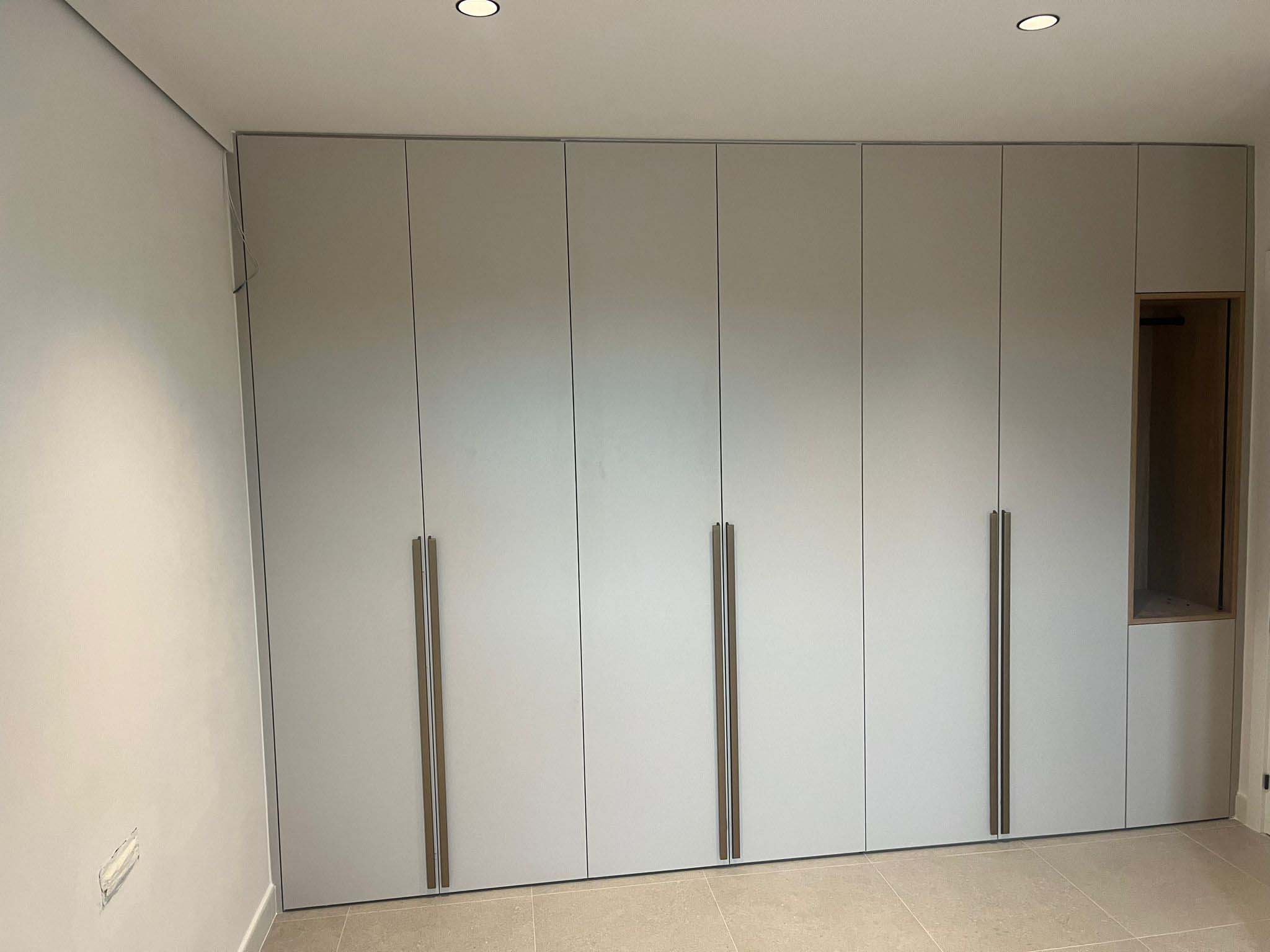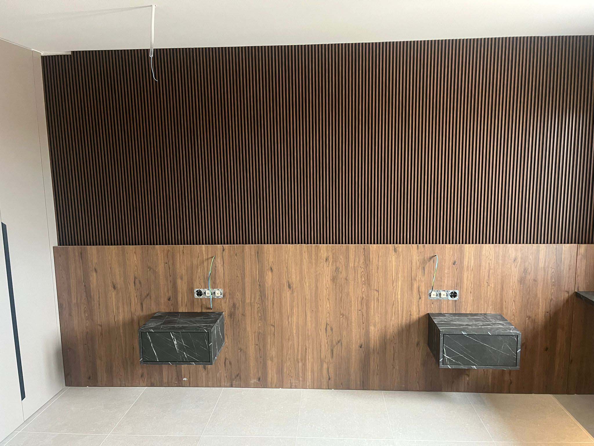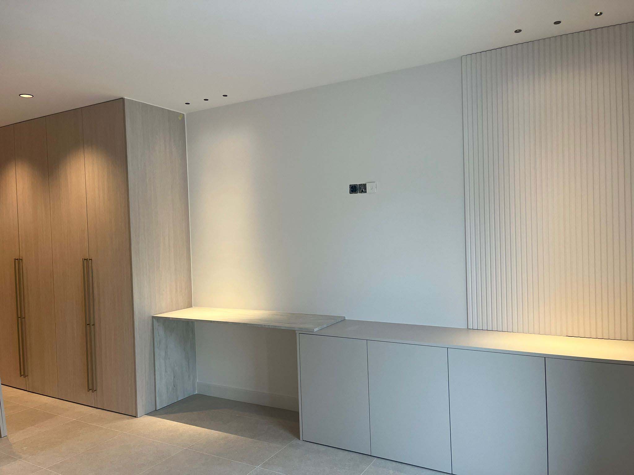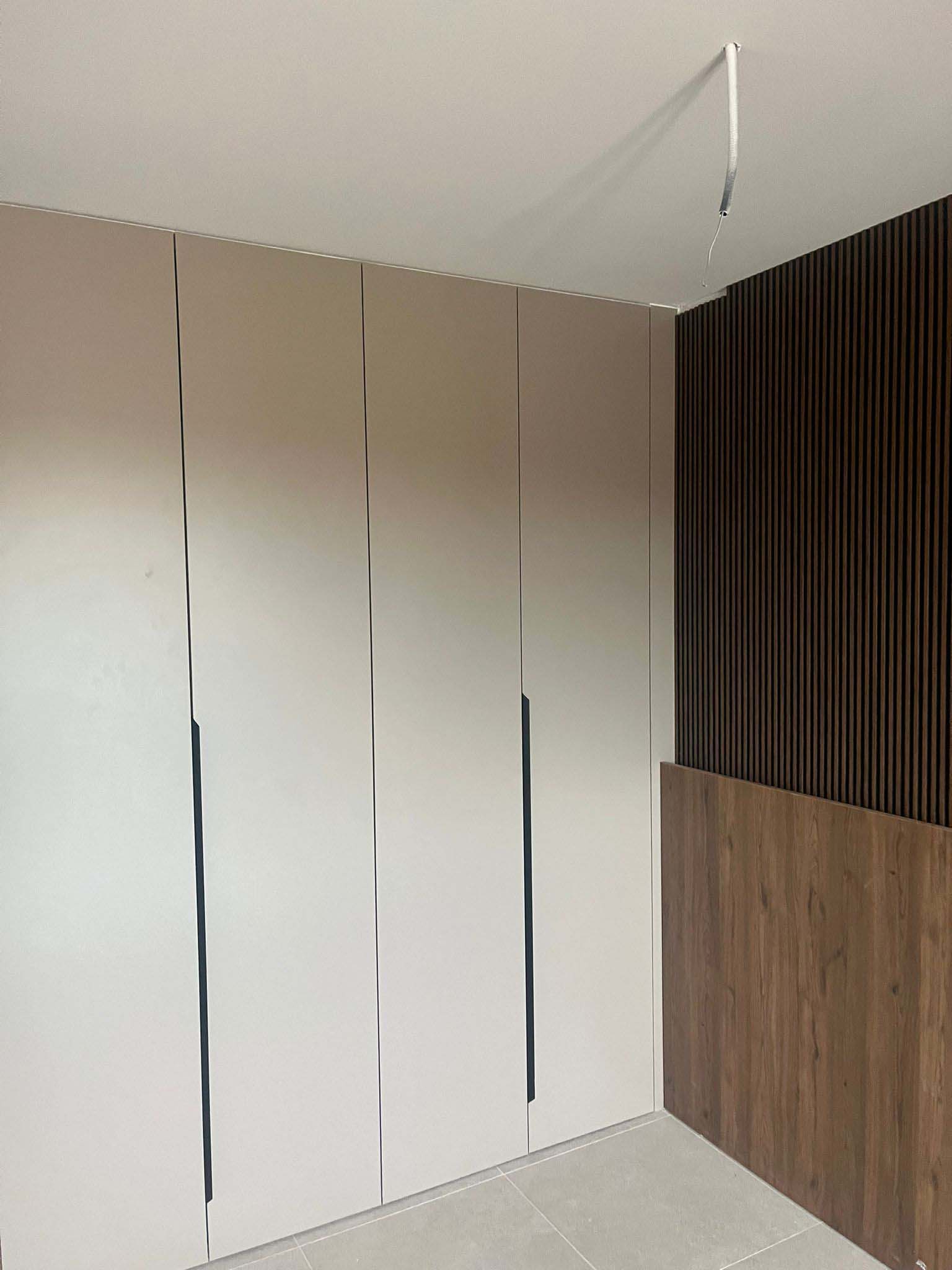 Se han fabricado puertas, armarios, cabeceros, armarios, mesillas, vestidores, panelado, muebles de baño, etc. Un trabajo completo que ha aportado un carácter único a la vivienda.
