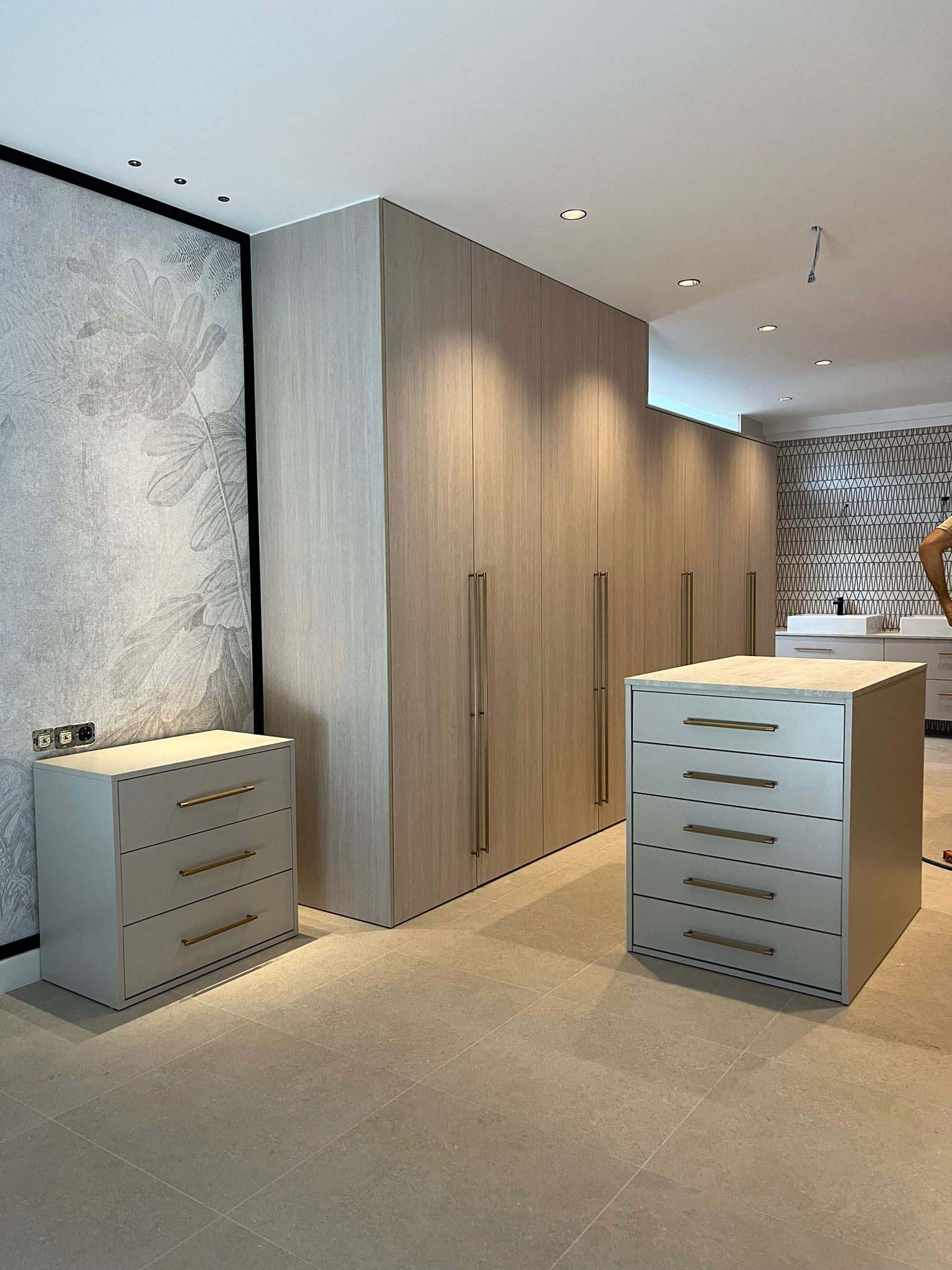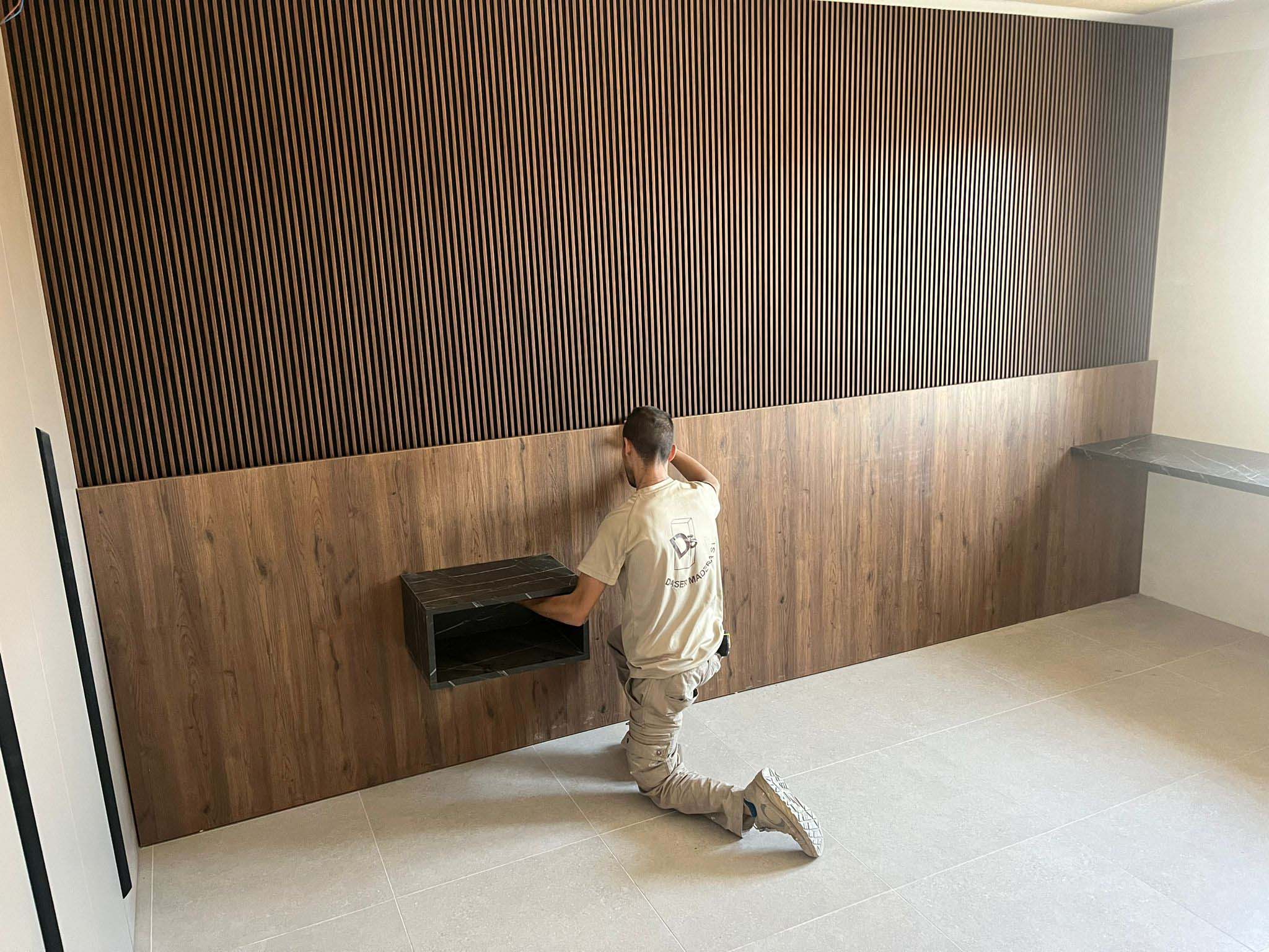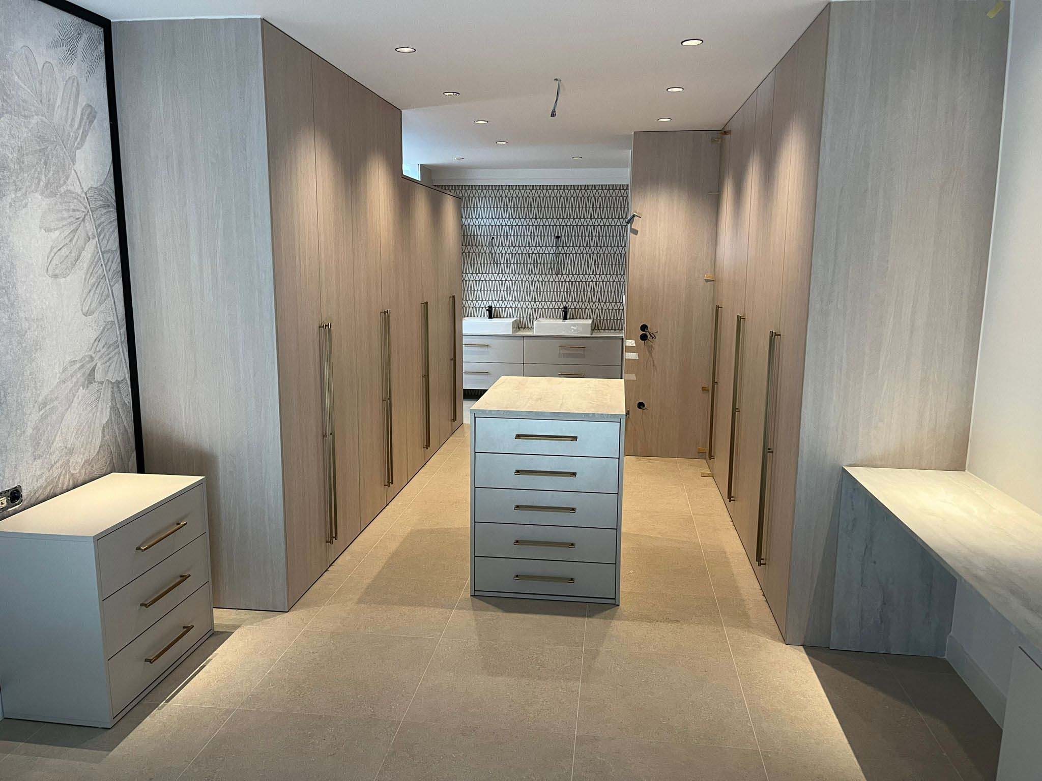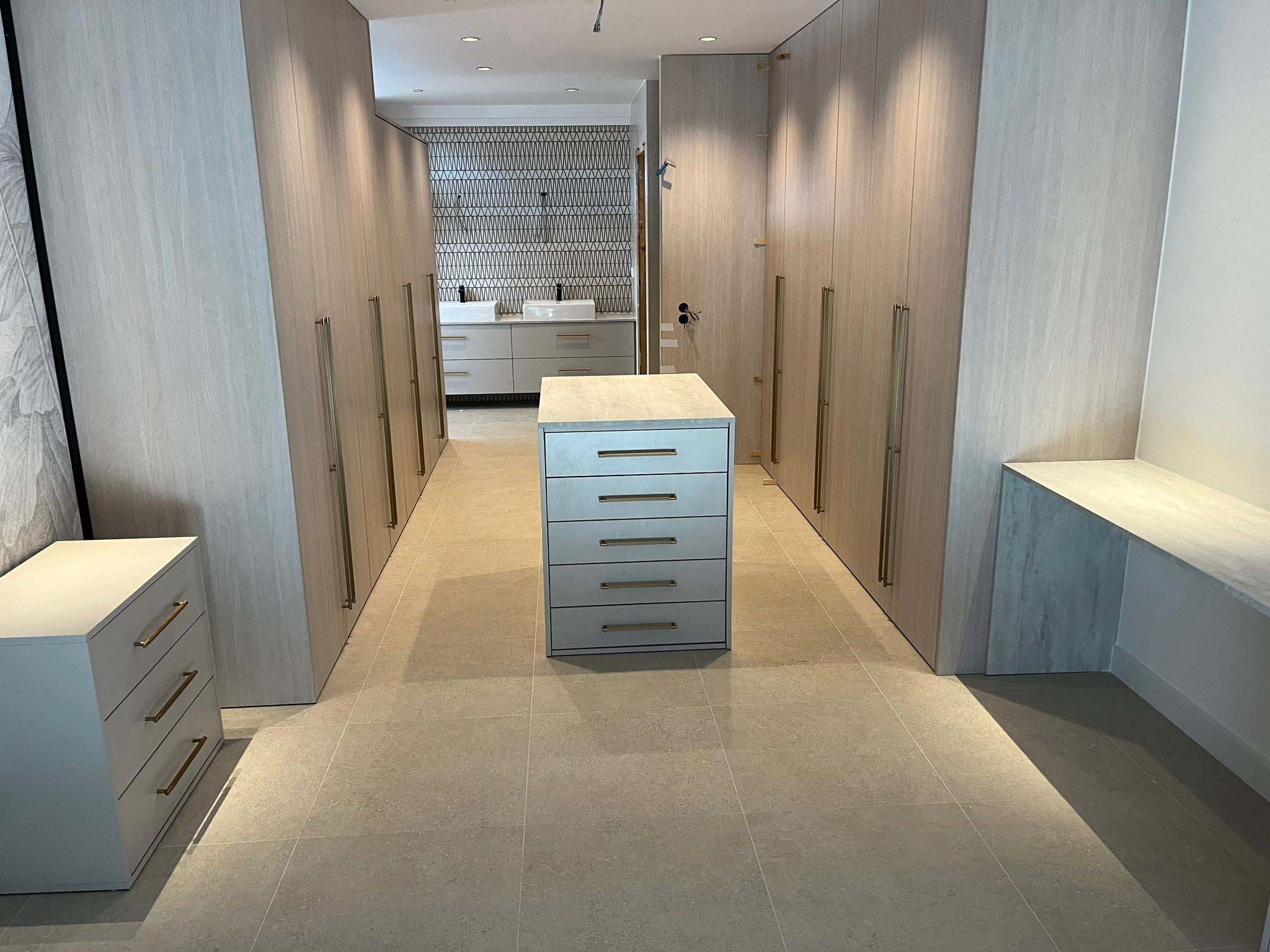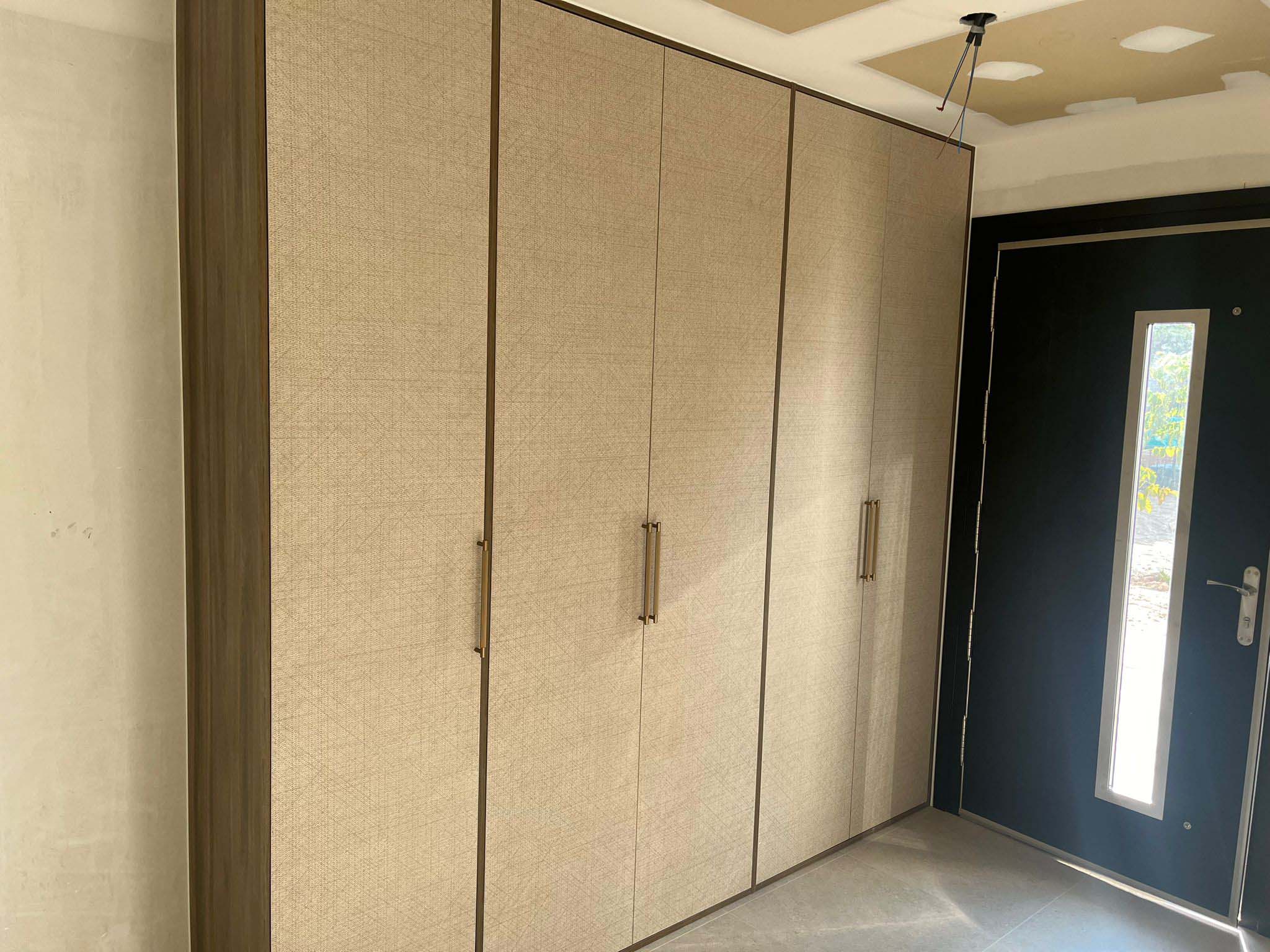Se han fabricado puertas, armarios, cabeceros, armarios, mesillas, vestidores, panelado, muebles de baño, etc. Un trabajo completo que ha aportado un carácter único a la vivienda.