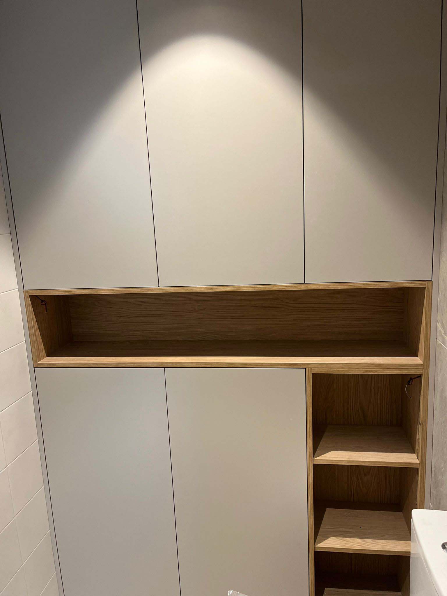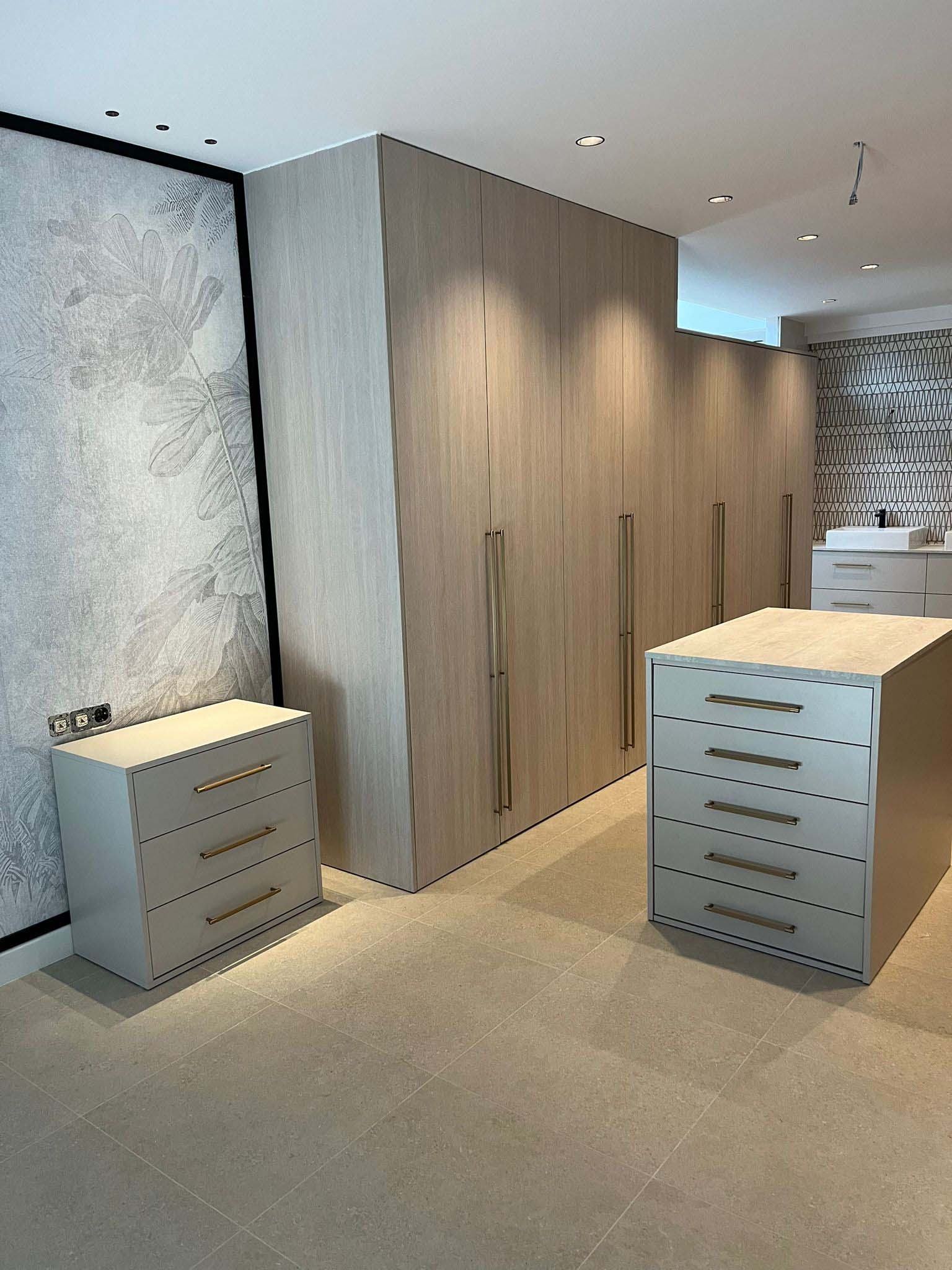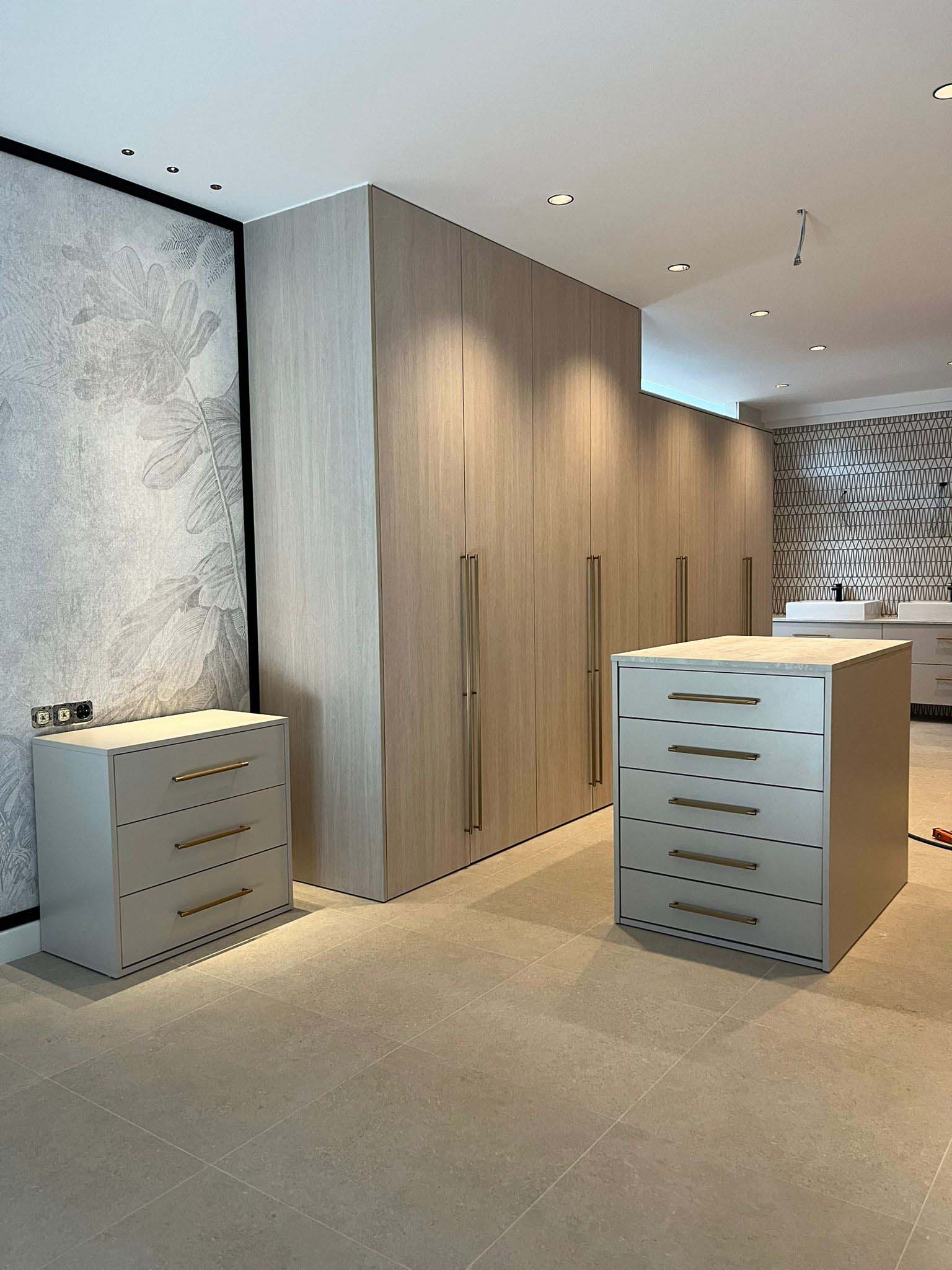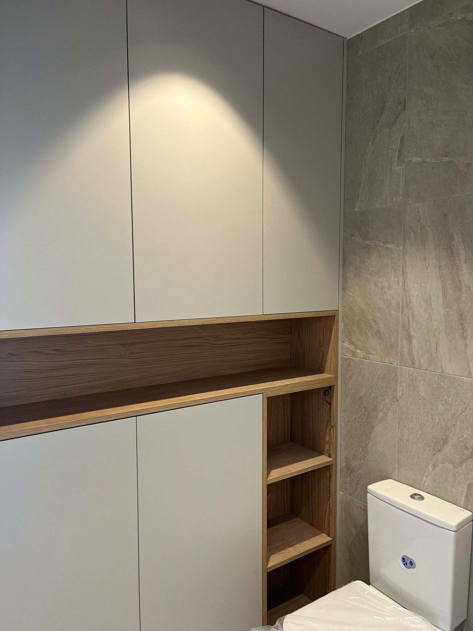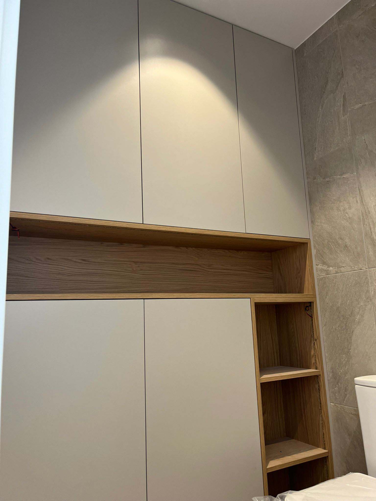 Se han fabricado puertas, armarios, cabeceros, armarios, mesillas, vestidores, panelado, muebles de baño, etc. Un trabajo completo que ha aportado un carácter único a la vivienda.
